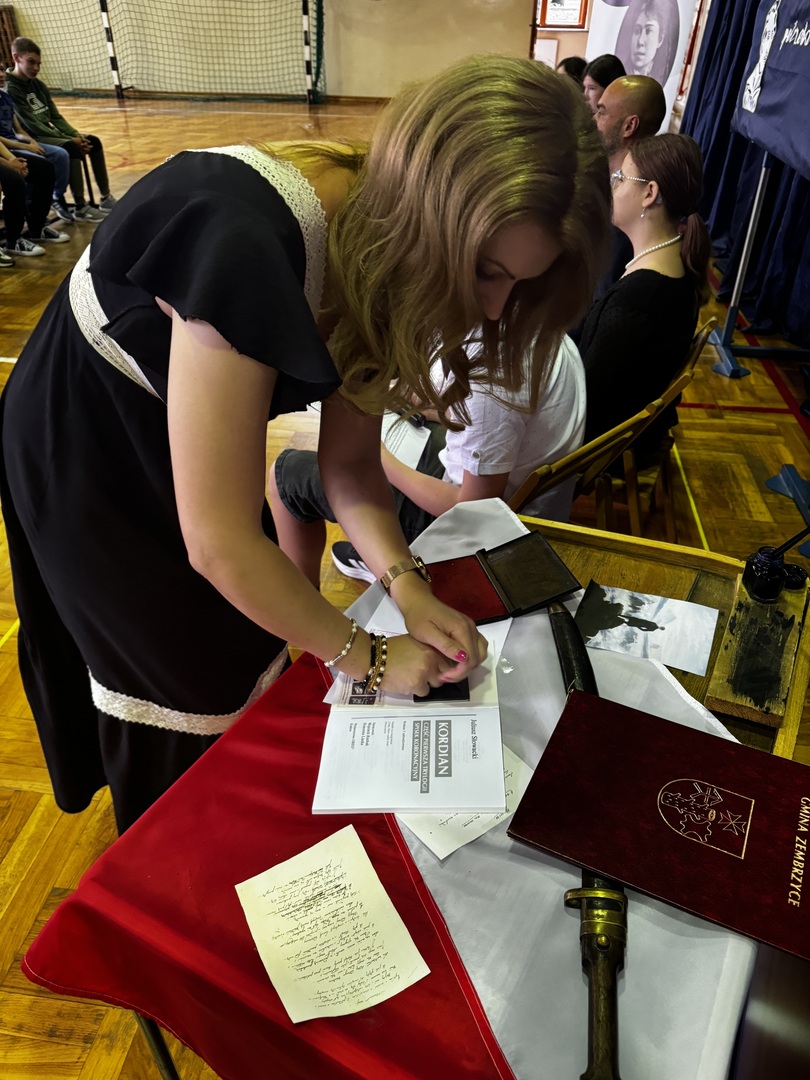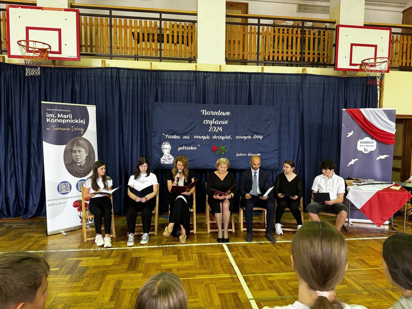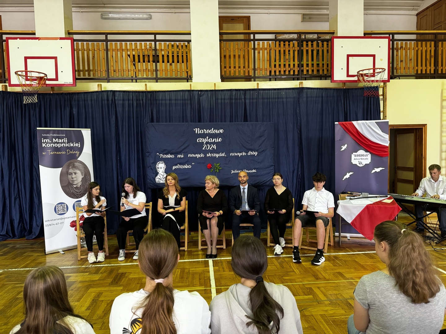 W uroczystości wzięła udział Pani Wójt Joanna Stypuła oraz dyrektor szkoły Ewa Dębińska. Wspólnie z nauczycielem wychowania fizycznego Bartłomiejem Polakiem oraz uczniami z klasy 8, odczytali oni wybrane fragmenty „Kordiana”. Towarzyszyła im piękna oprawa muzyczna, złożona z utworów klasycznych, które podkreślały emocje dramatu i wprowadzały zgromadzonych w wyjątkowy nastrój.