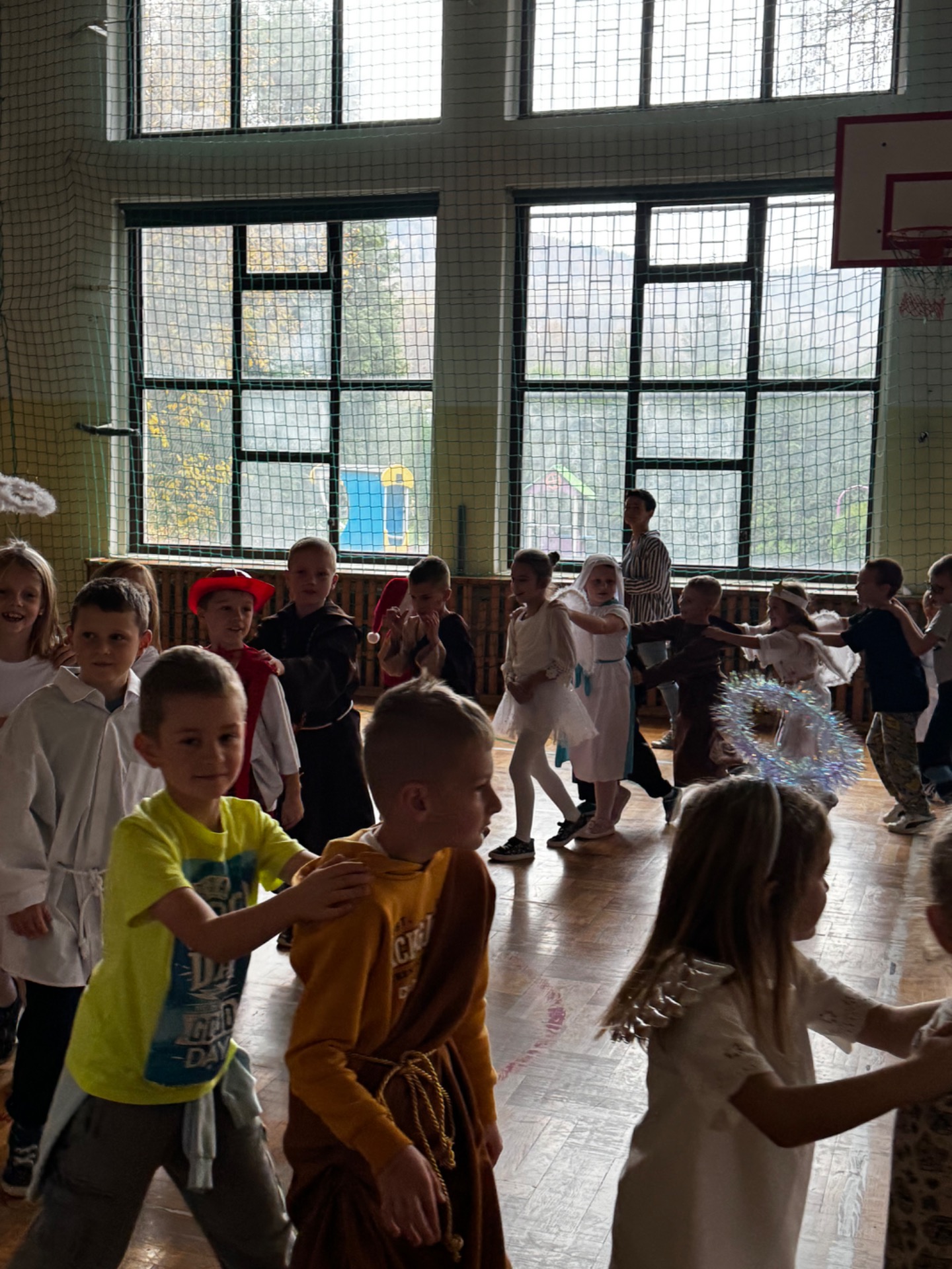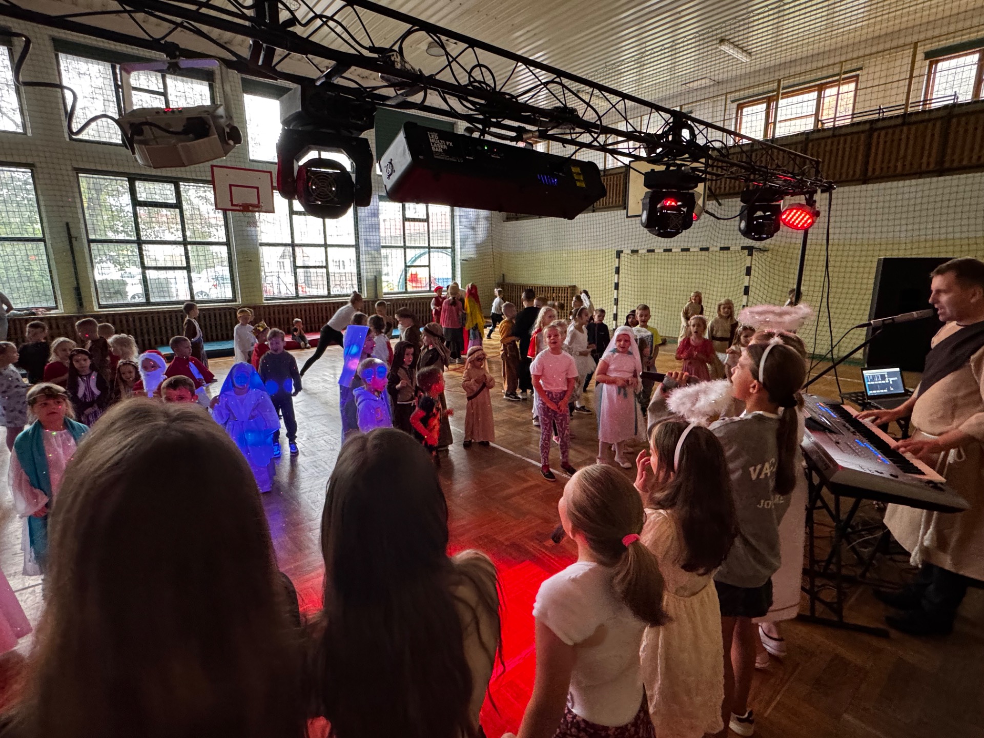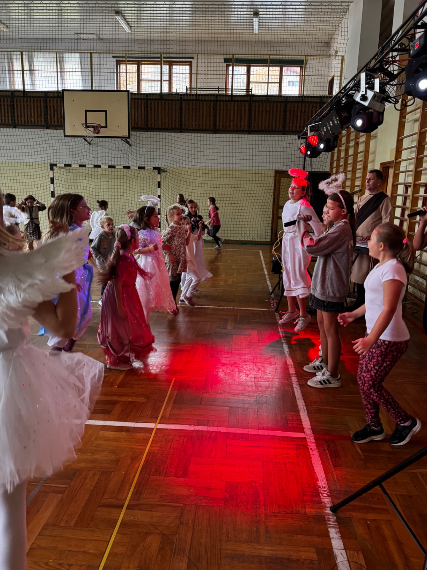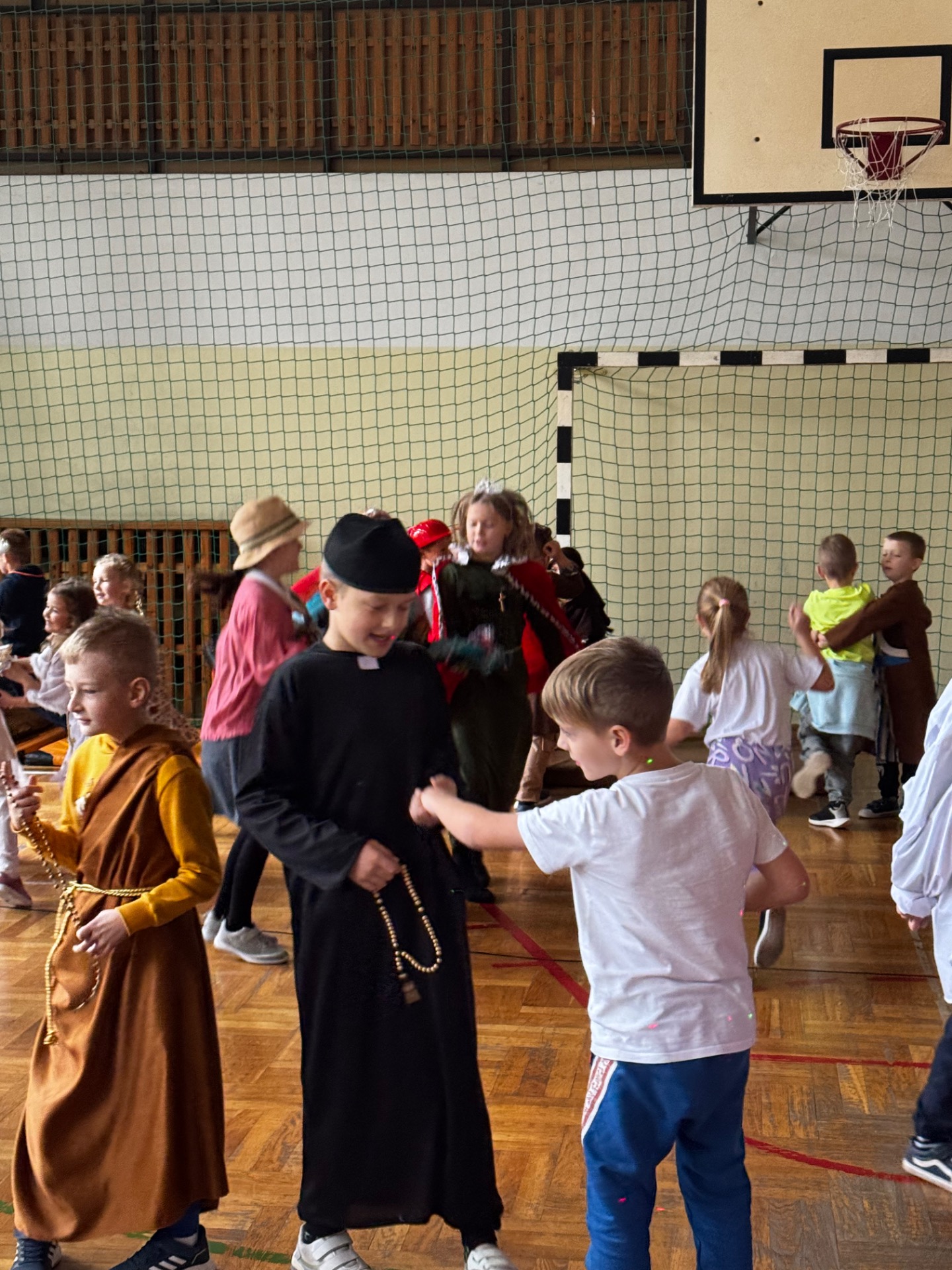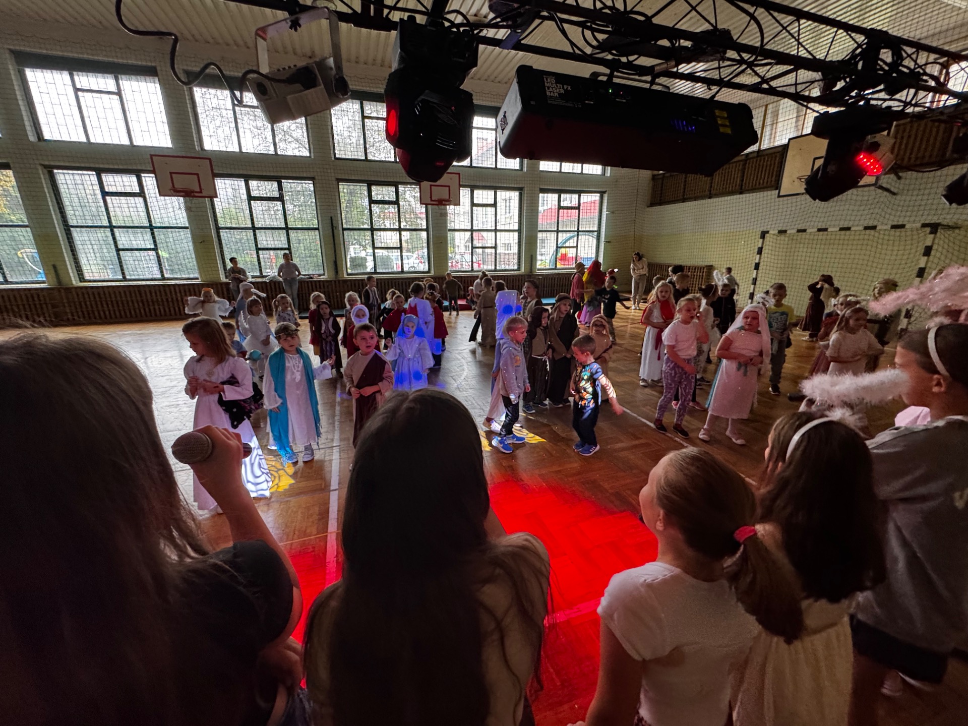 W naszej szkole odbył się wyjątkowy Bal Świętych, w którym wzięły udział dzieci z klas 0-3. Wydarzenie to, zorganizowane przy wsparciu samorządu oraz wolontariuszy, a pod nadzorem pana Proroka, przyniosło wiele radości i uśmiechu.