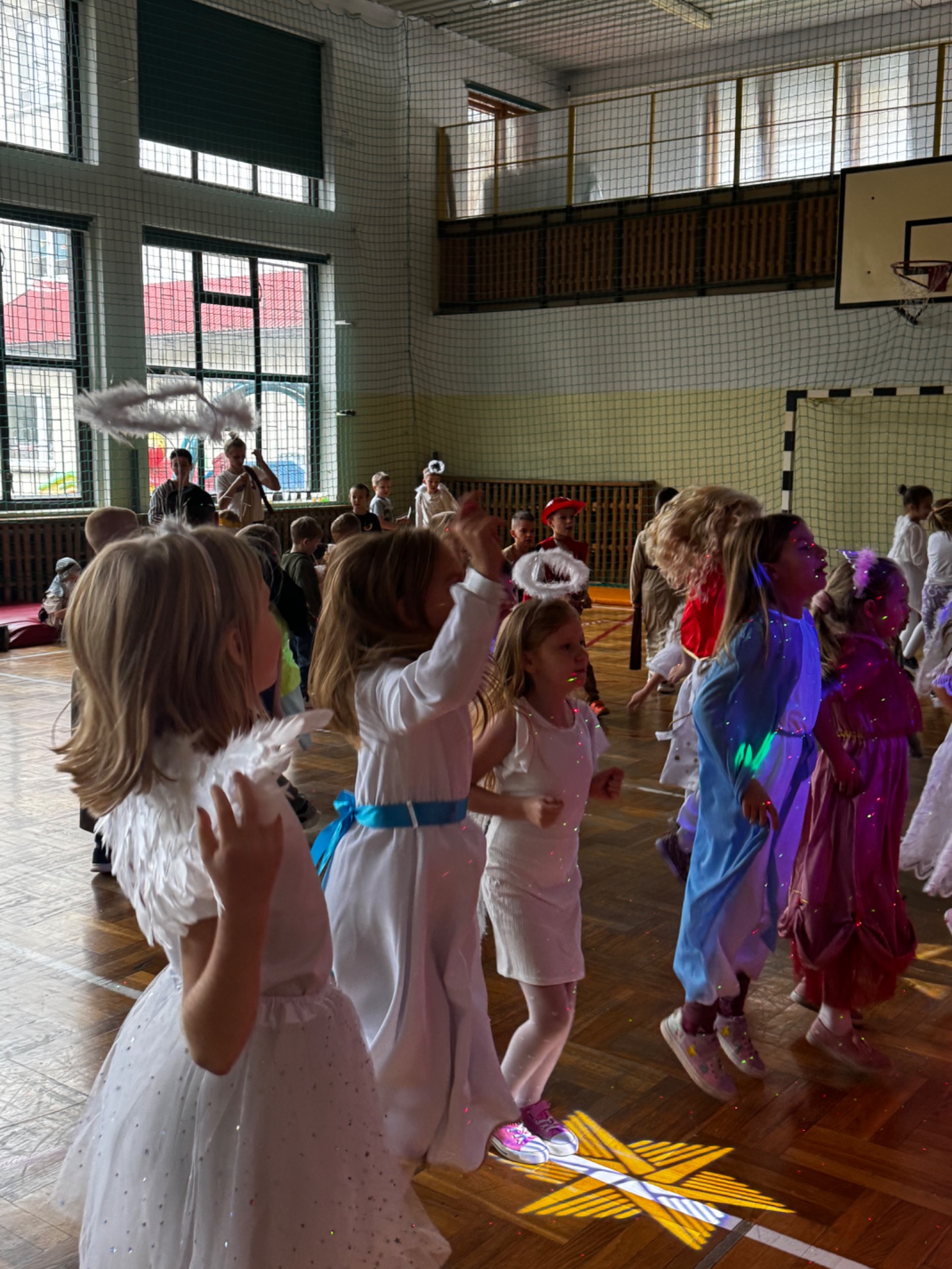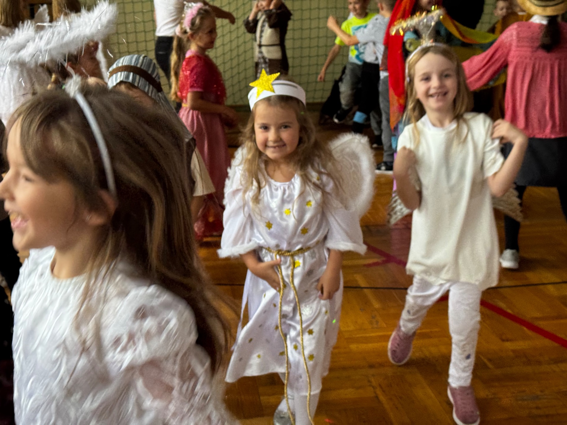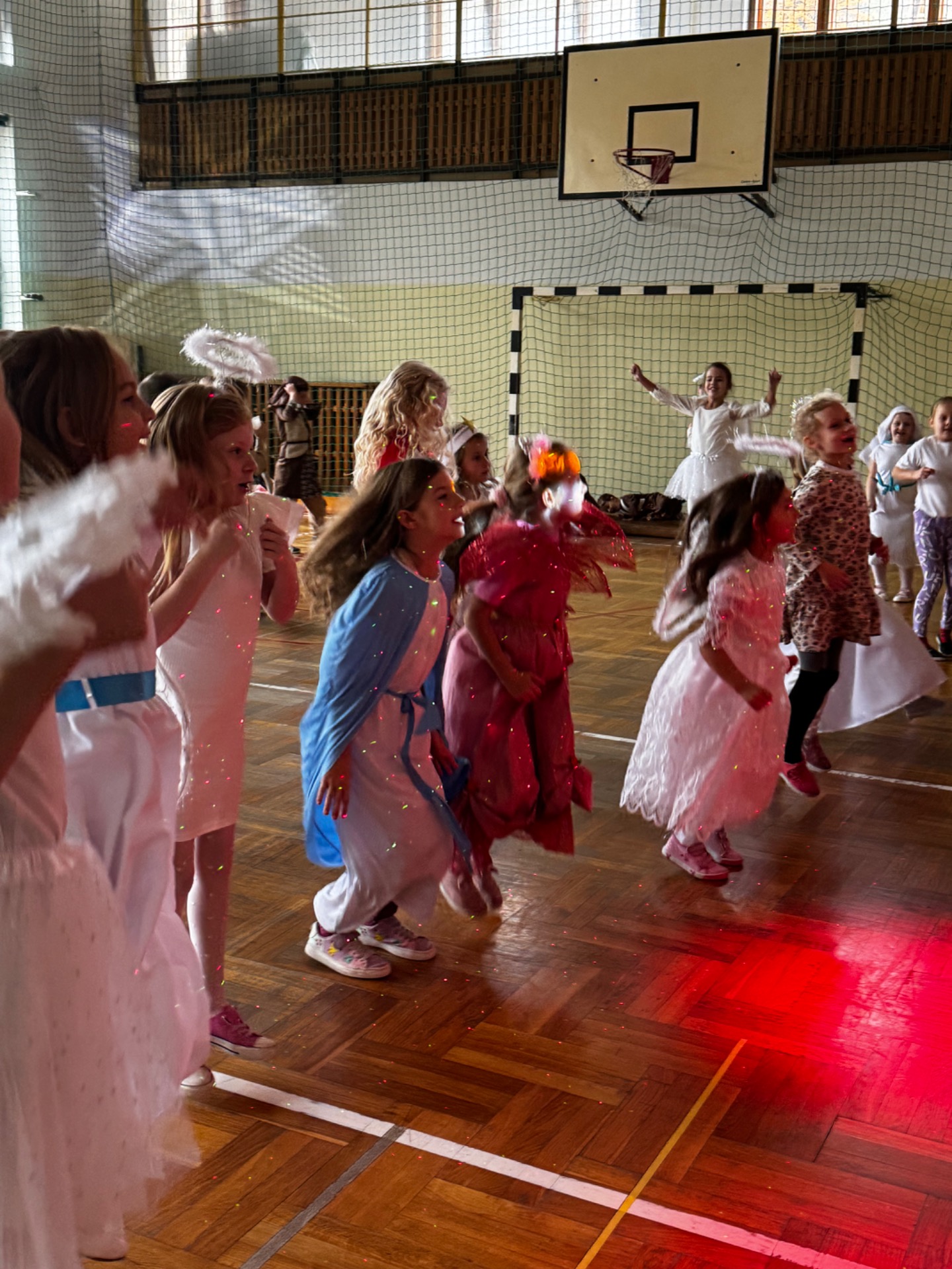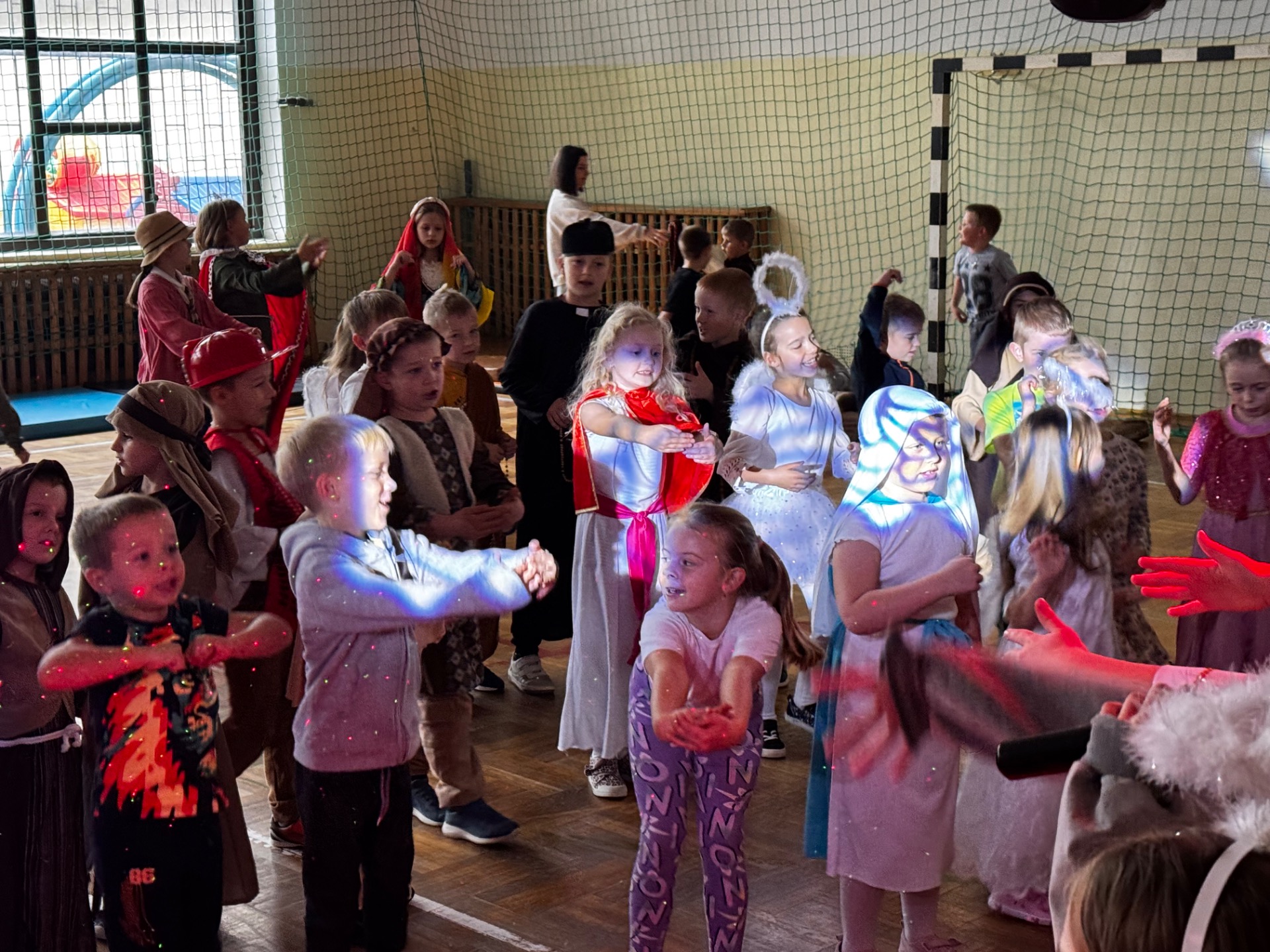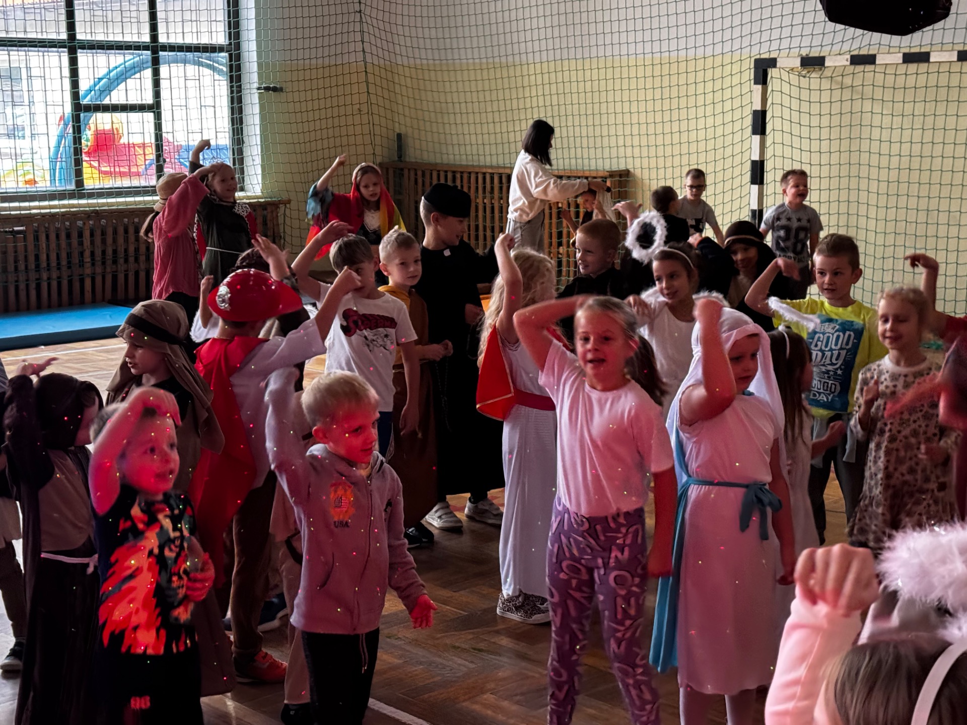 W naszej szkole odbył się wyjątkowy Bal Świętych, w którym wzięły udział dzieci z klas 0-3. Wydarzenie to, zorganizowane przy wsparciu samorządu oraz wolontariuszy, a pod nadzorem pana Proroka, przyniosło wiele radości i uśmiechu.