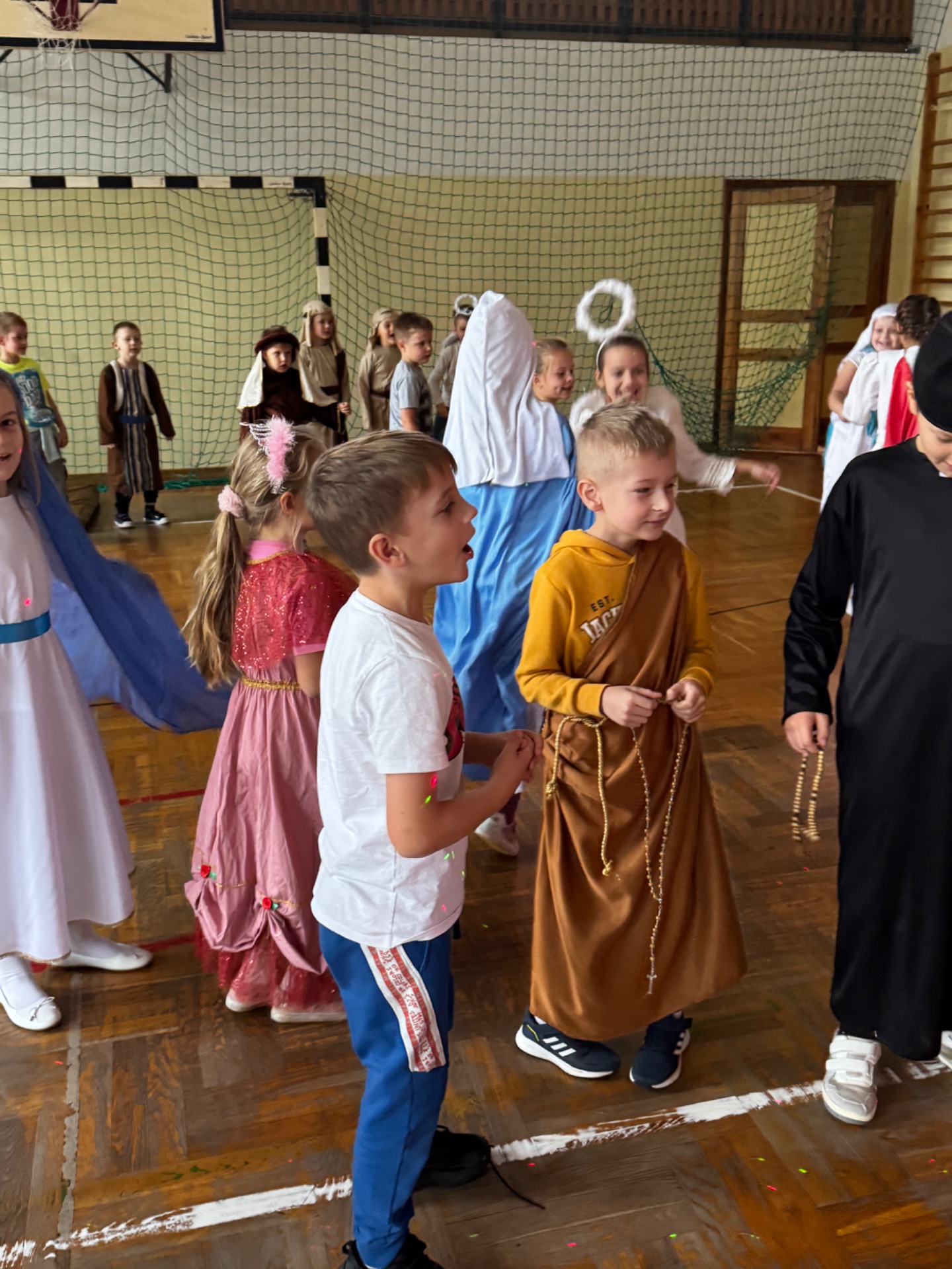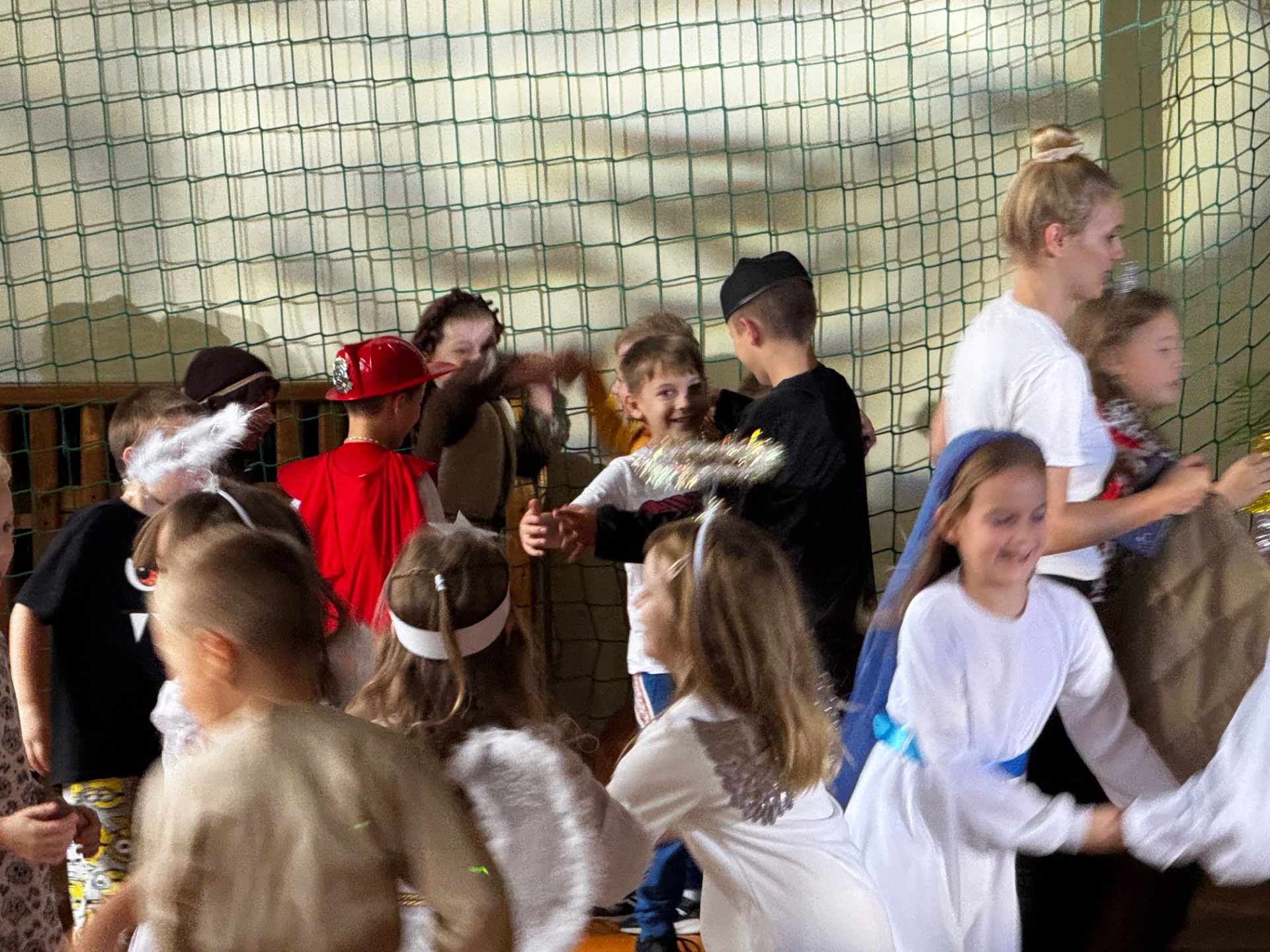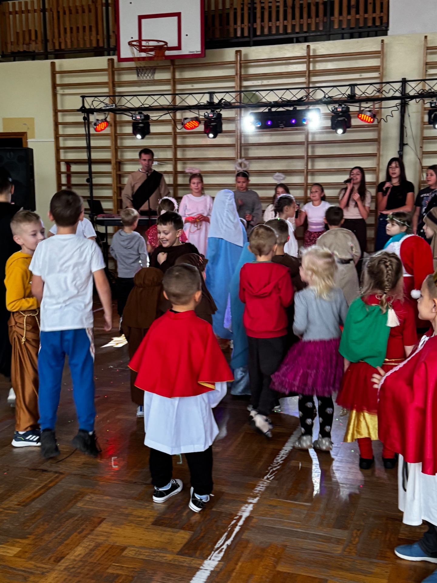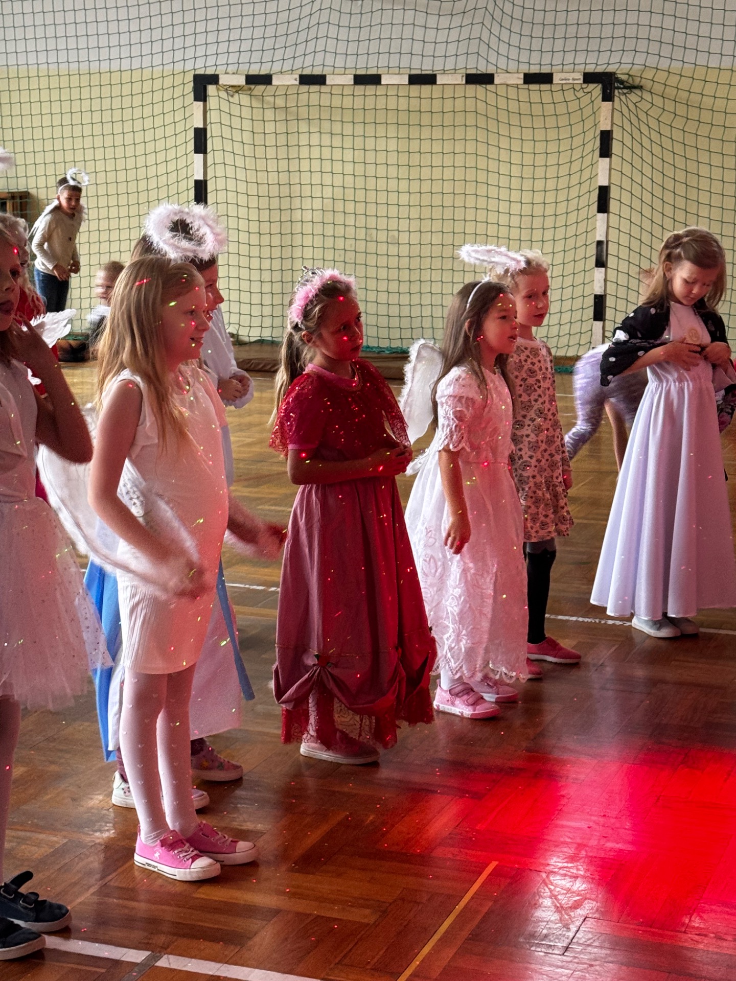 W naszej szkole odbył się wyjątkowy Bal Świętych, w którym wzięły udział dzieci z klas 0-3. Wydarzenie to, zorganizowane przy wsparciu samorządu oraz wolontariuszy, a pod nadzorem pana Proroka, przyniosło wiele radości i uśmiechu.