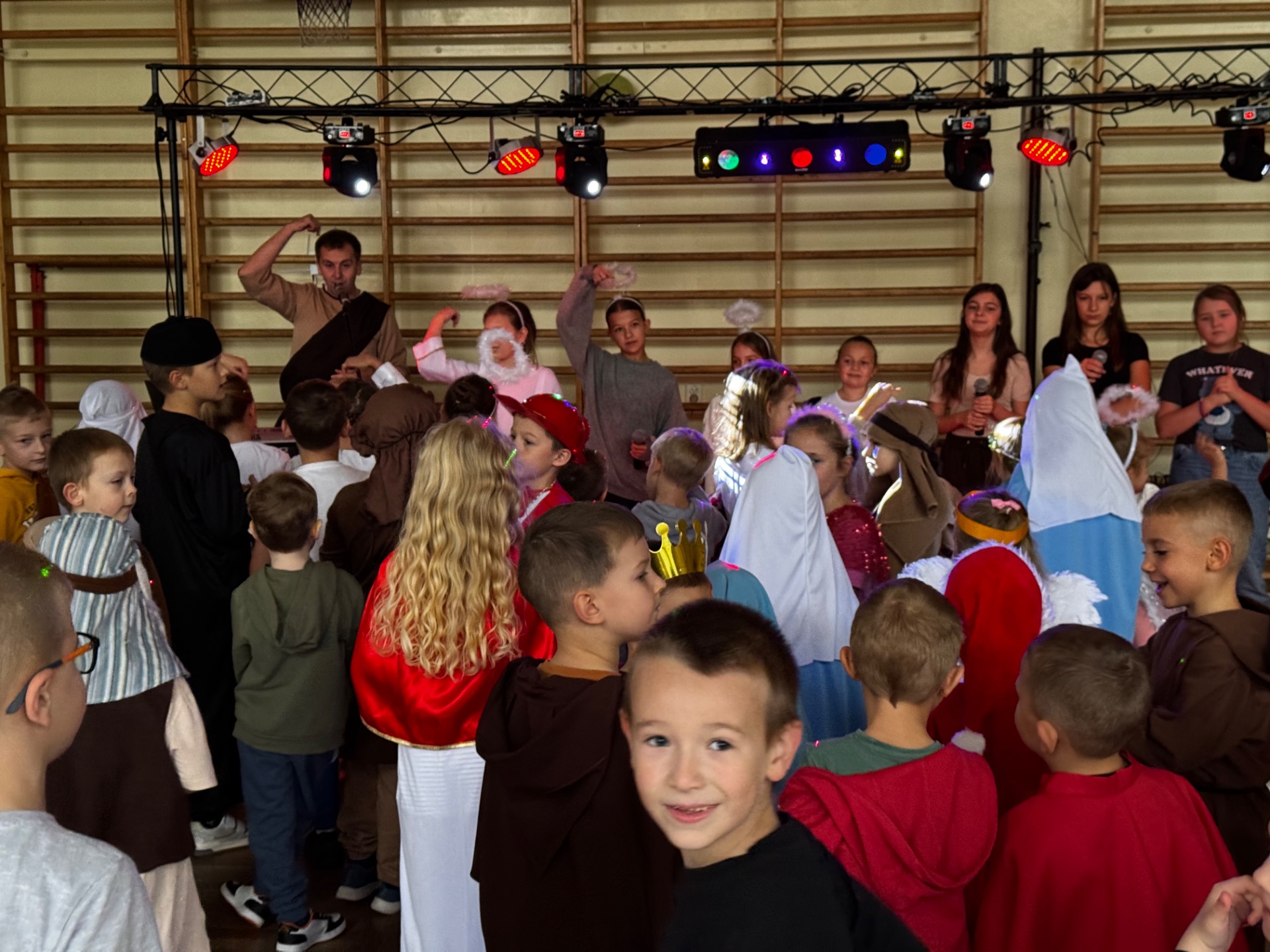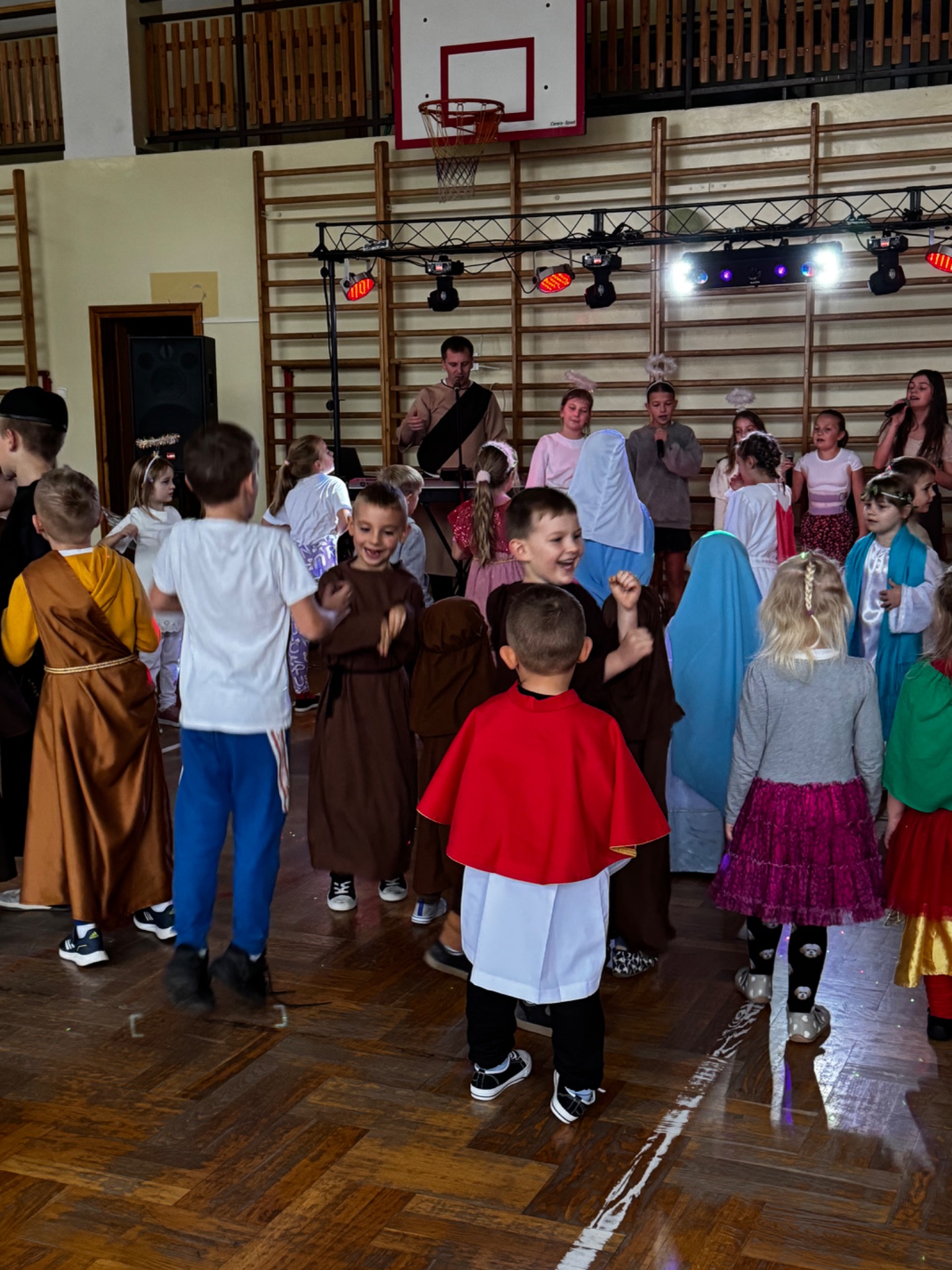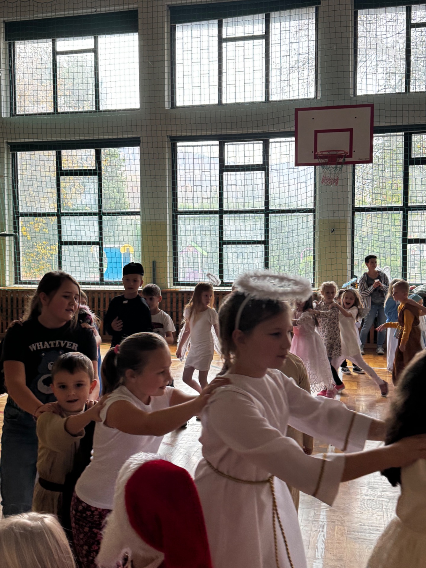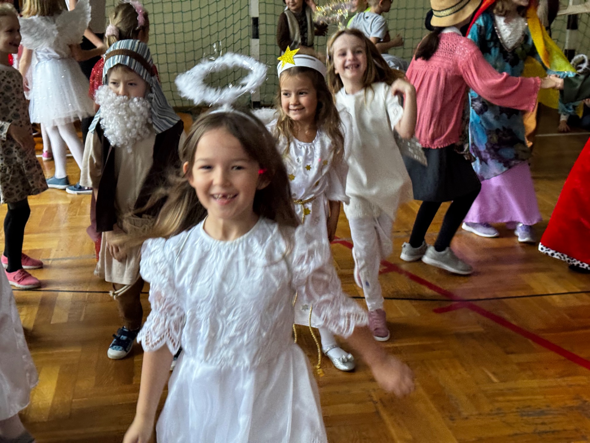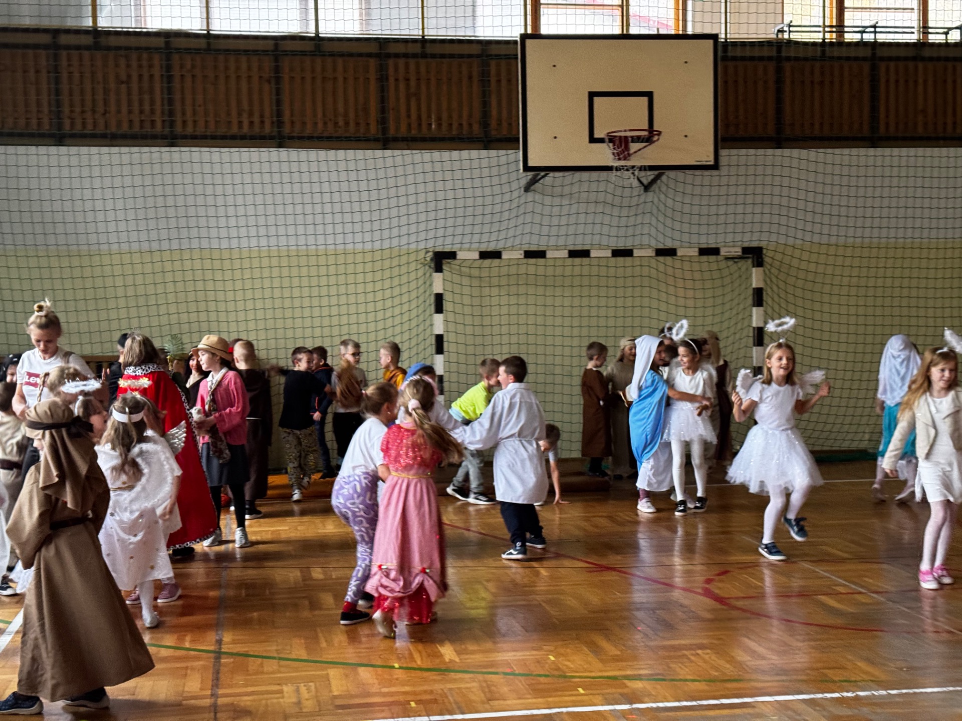 W naszej szkole odbył się wyjątkowy Bal Świętych, w którym wzięły udział dzieci z klas 0-3. Wydarzenie to, zorganizowane przy wsparciu samorządu oraz wolontariuszy, a pod nadzorem pana Proroka, przyniosło wiele radości i uśmiechu.