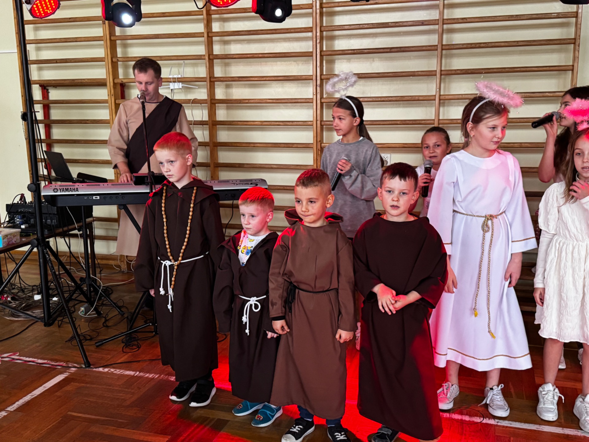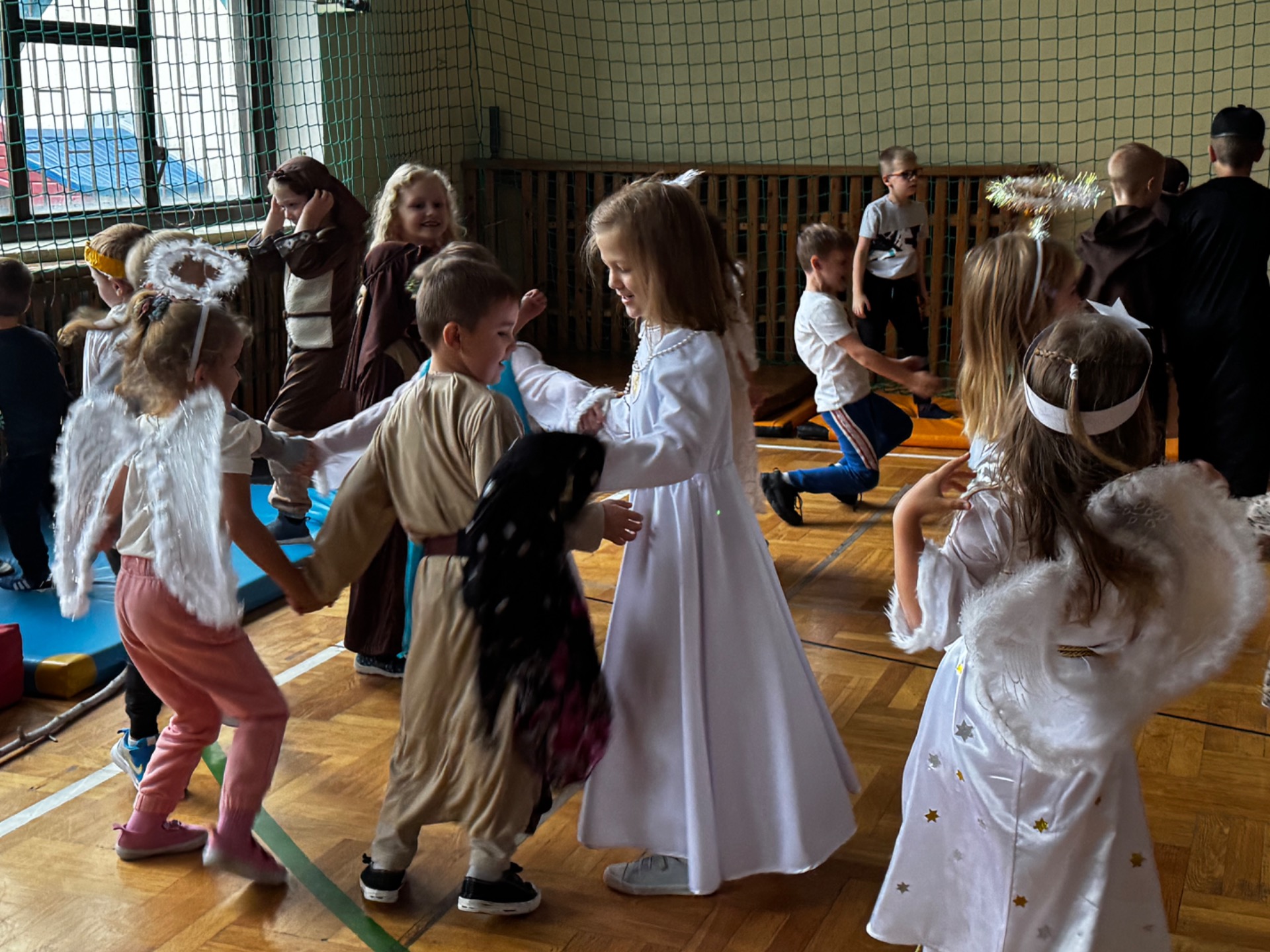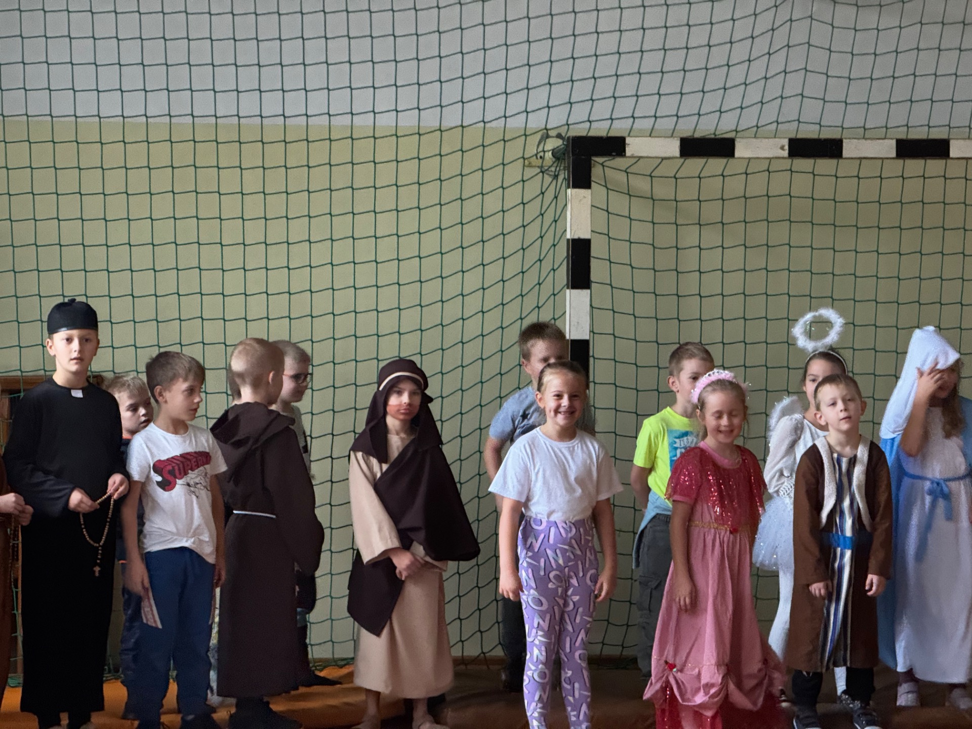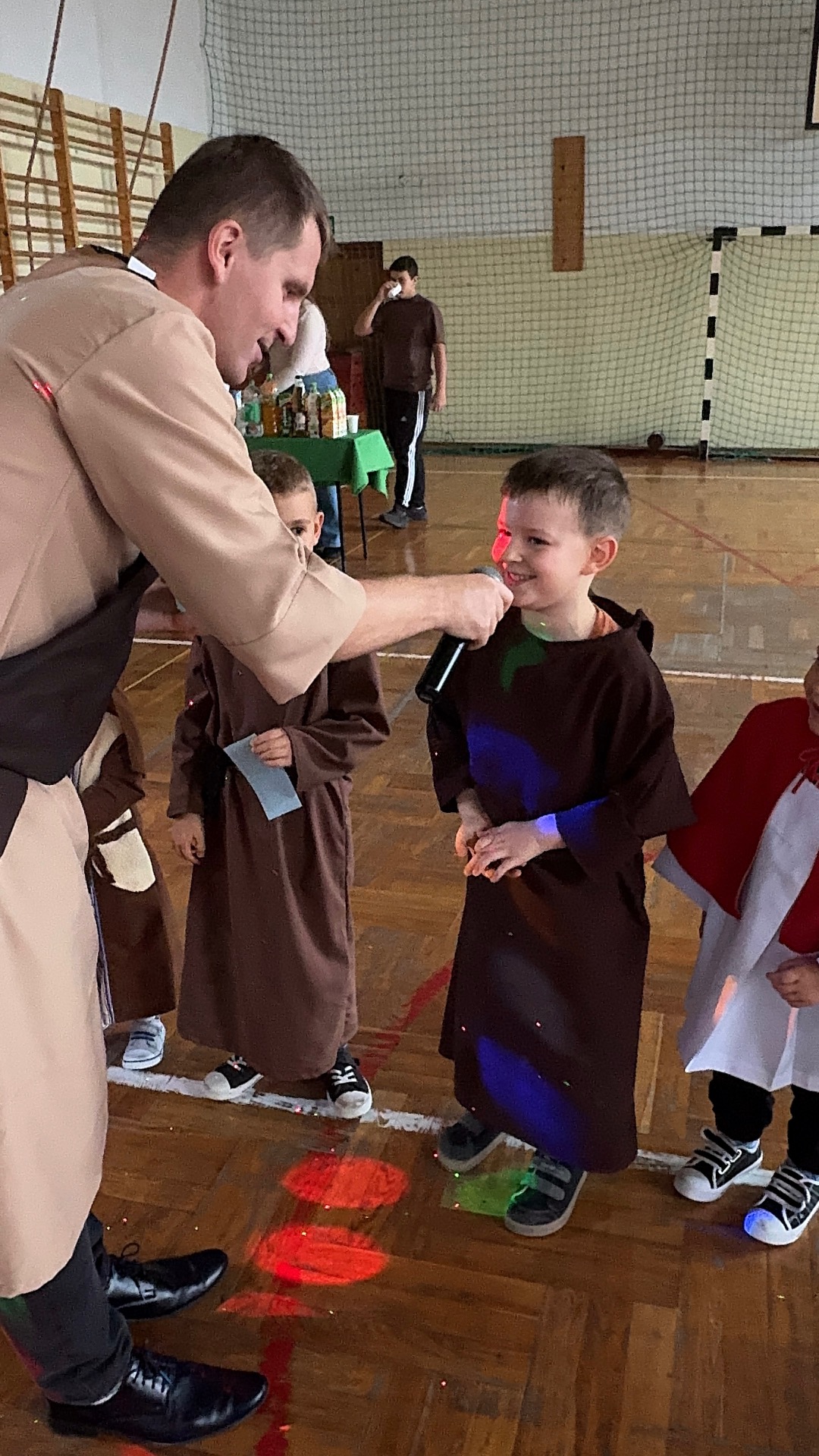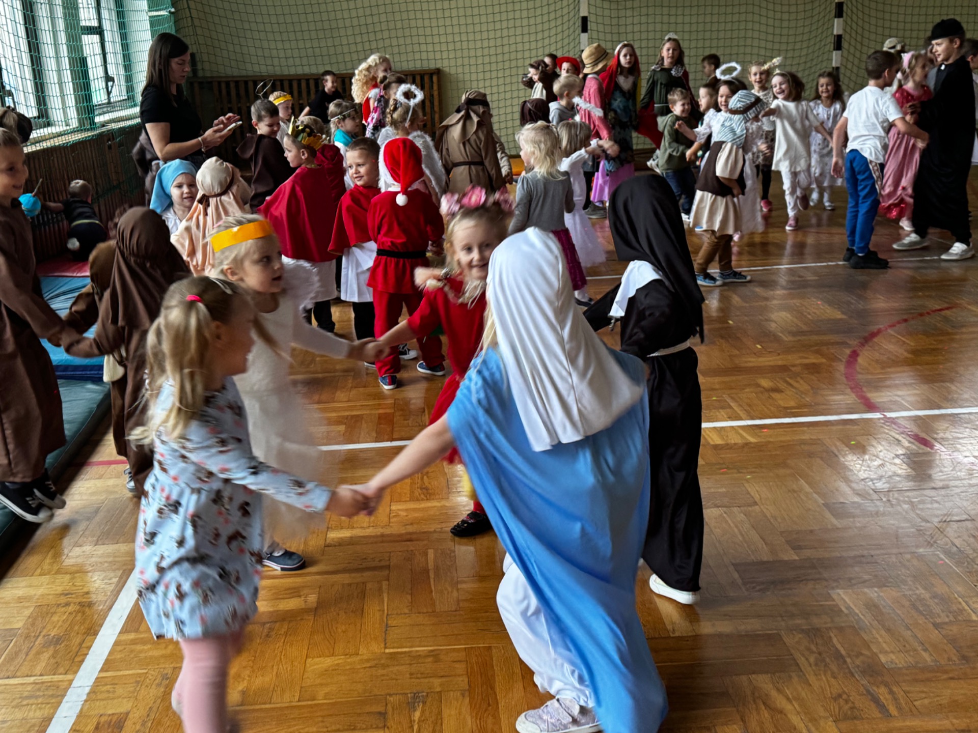 W naszej szkole odbył się wyjątkowy Bal Świętych, w którym wzięły udział dzieci z klas 0-3. Wydarzenie to, zorganizowane przy wsparciu samorządu oraz wolontariuszy, a pod nadzorem pana Proroka, przyniosło wiele radości i uśmiechu.