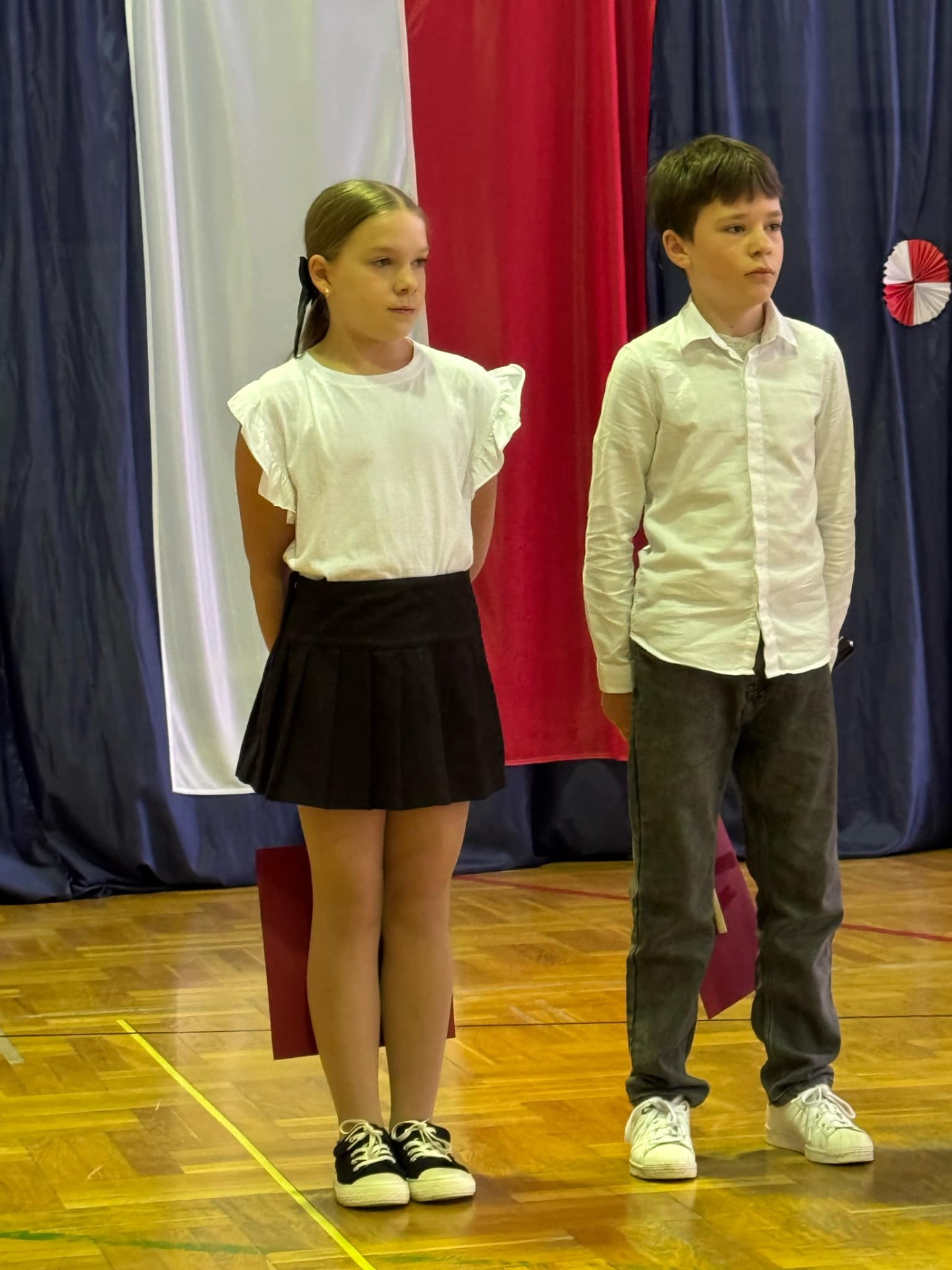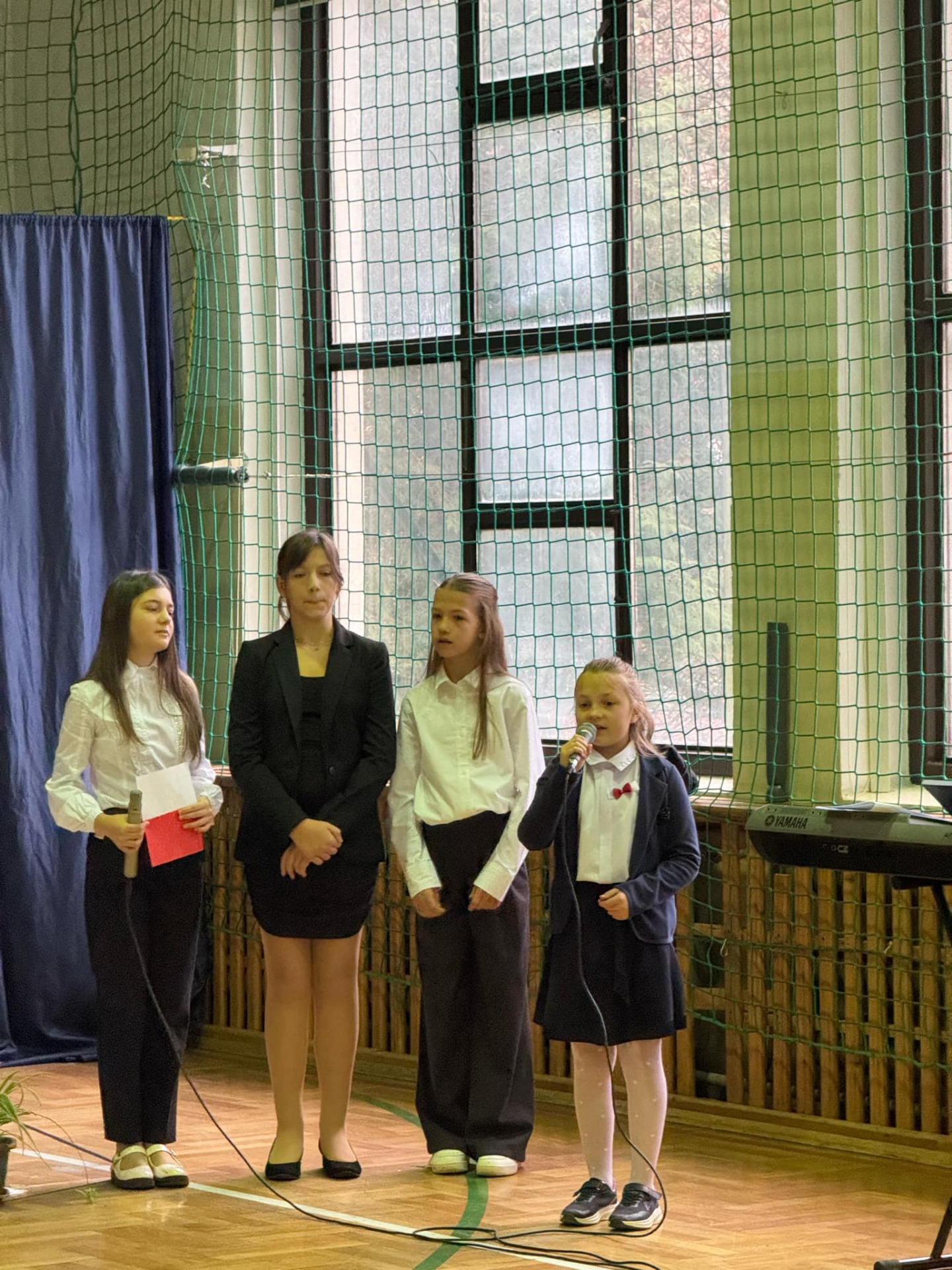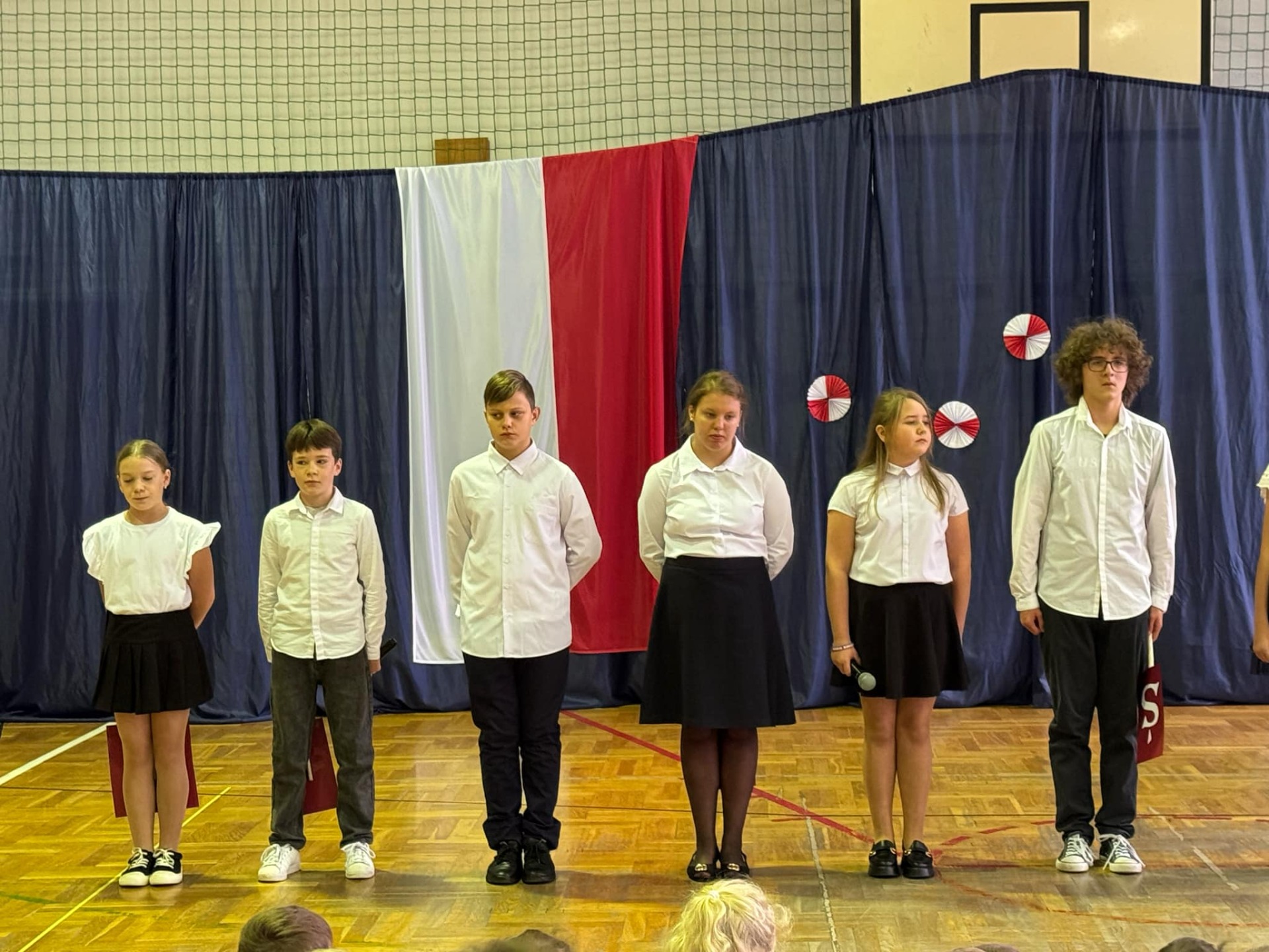Kulminacyjnym punktem uroczystości był udział w akcji "Do hymnu", podczas której cała społeczność szkolna wspólnie zaśpiewała "Mazurka Dąbrowskiego". Był to niezwykle podniosły moment, który podkreślił naszą jedność oraz dumę z bycia Polakami!