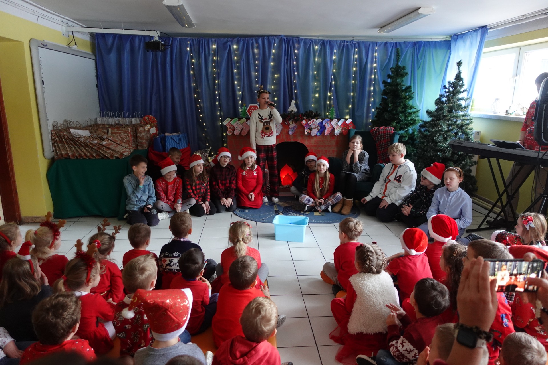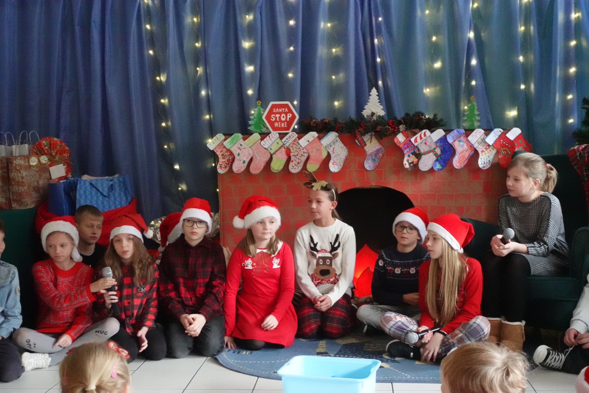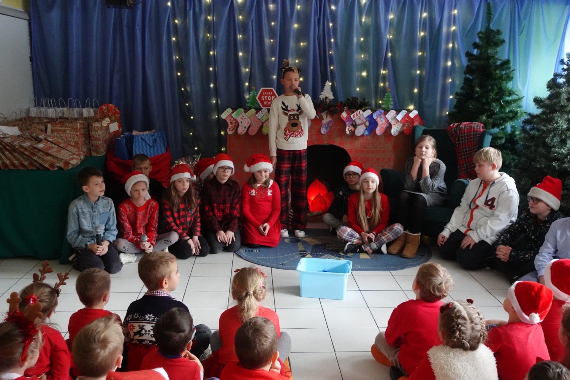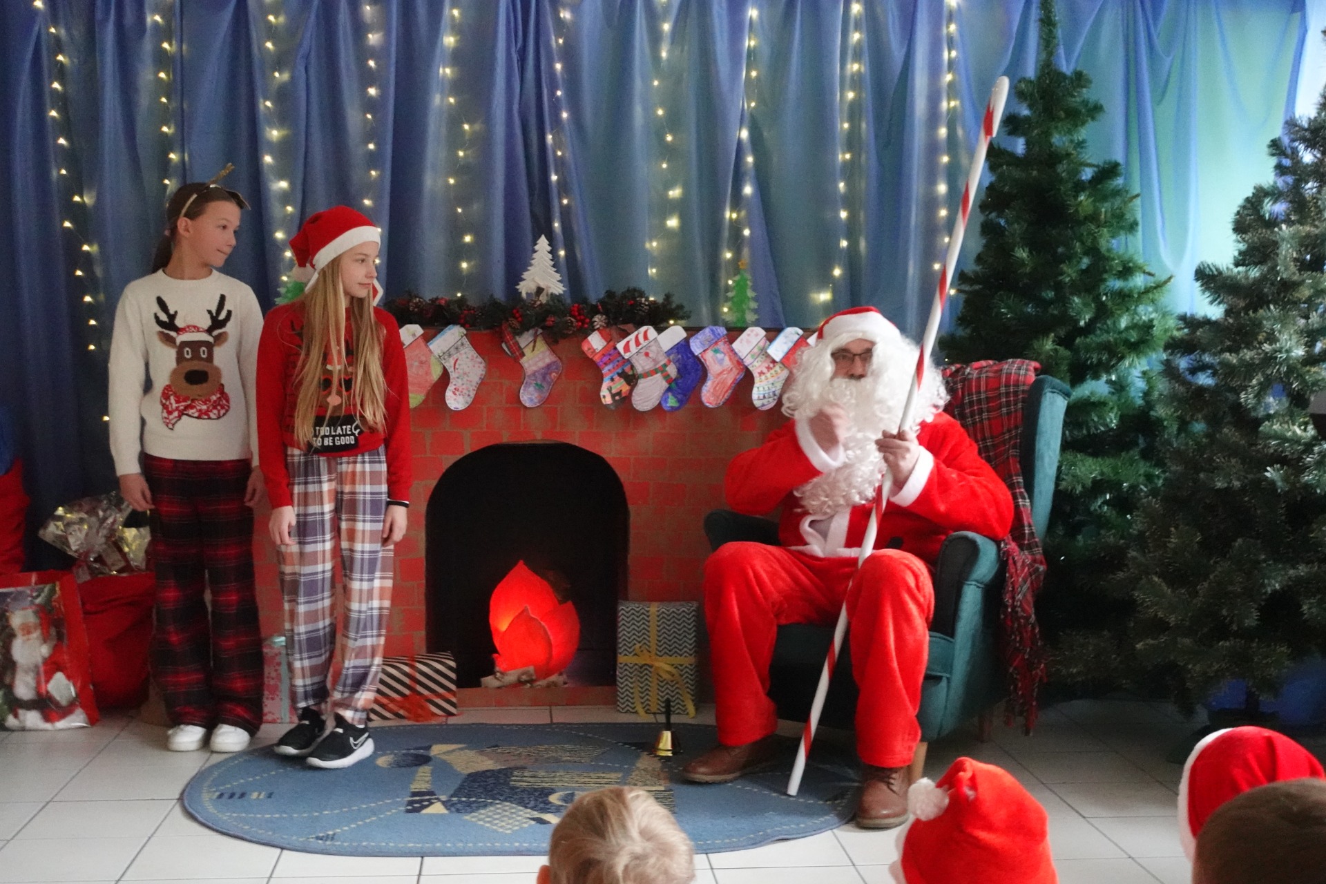 6 grudnia naszą szkołę odwiedził długo wyczekiwany gość - Święty Mikołaj! Wizyta rozpoczęła się częścią artystyczną przygotowaną przez uczniów klasy 4.Sala zmieniła się w magiczny, świąteczny pokój z klimatycznym kominkiem, tworzącym niezapomnianą atmosferę.