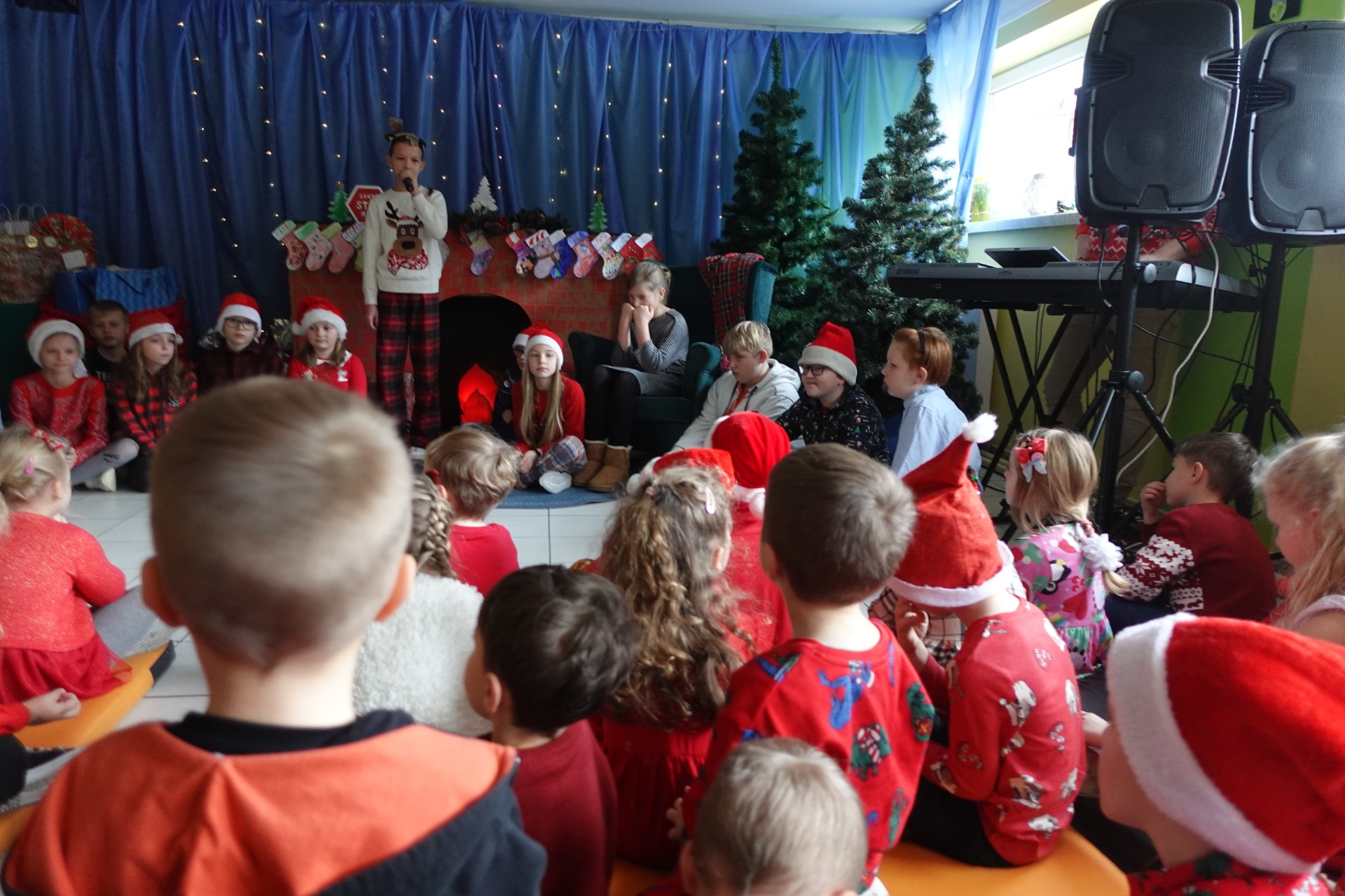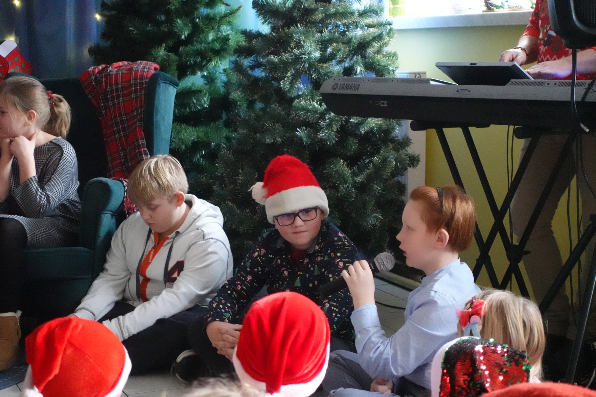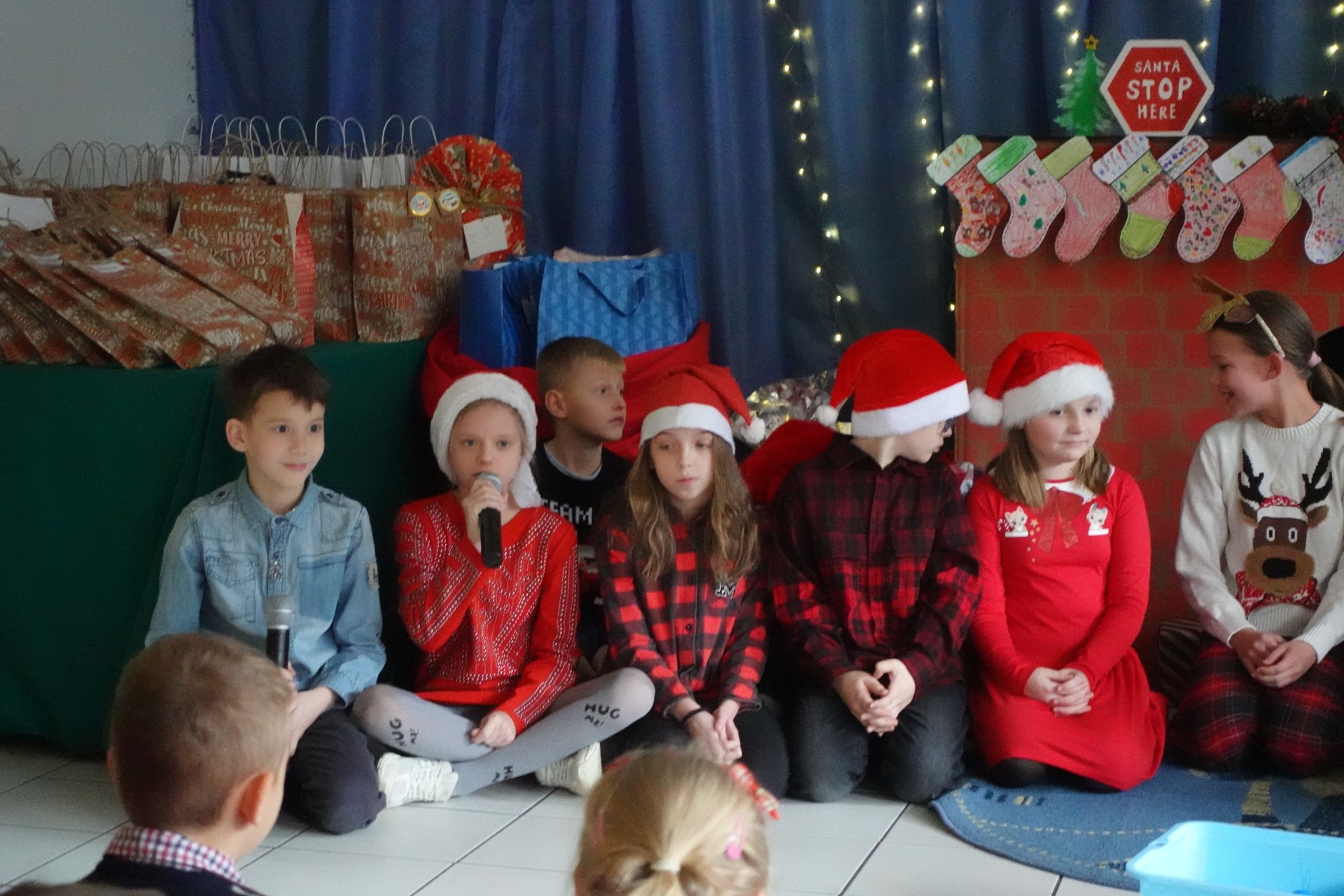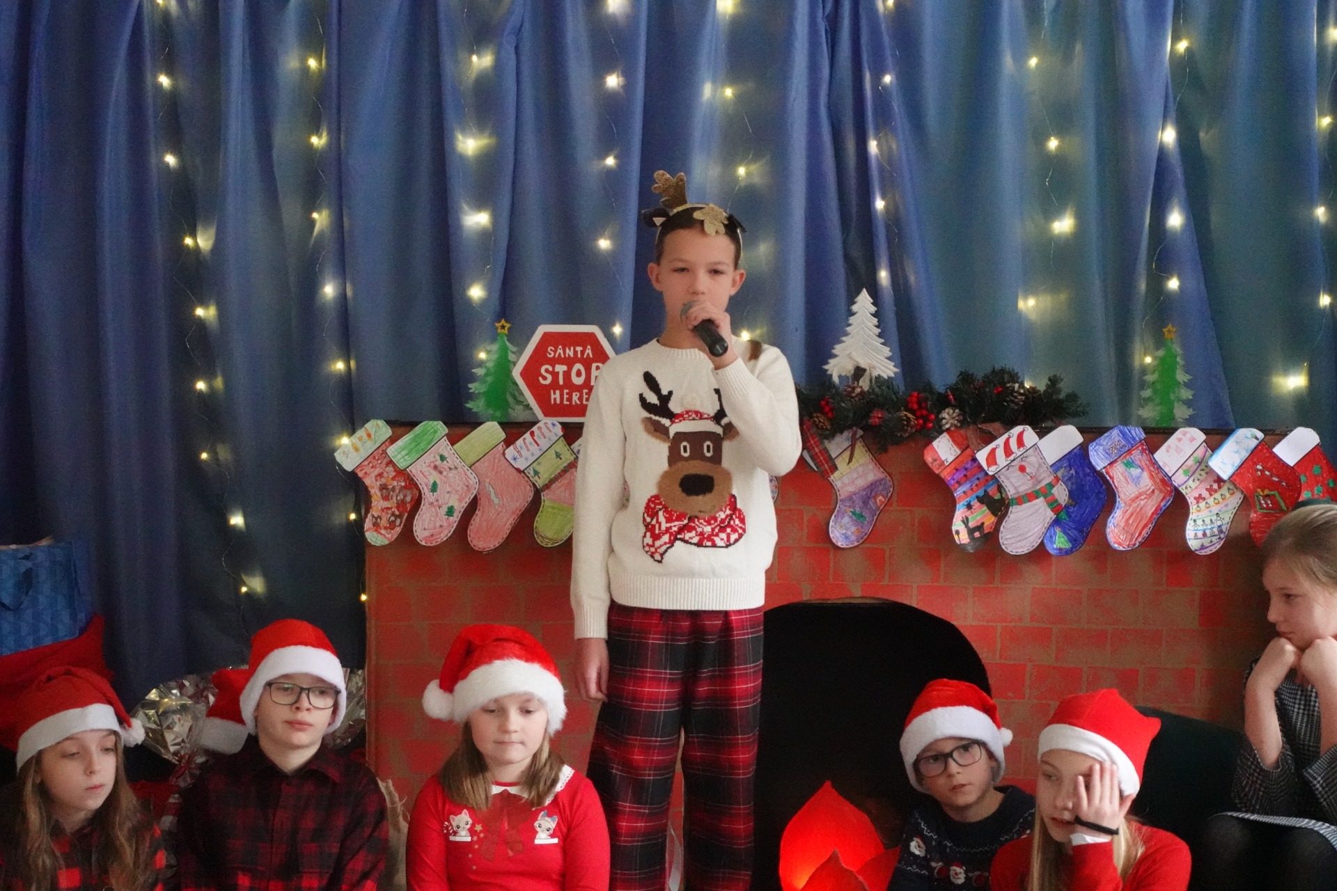 6 grudnia naszą szkołę odwiedził długo wyczekiwany gość - Święty Mikołaj! Wizyta rozpoczęła się częścią artystyczną przygotowaną przez uczniów klasy 4.Sala zmieniła się w magiczny, świąteczny pokój z klimatycznym kominkiem, tworzącym niezapomnianą atmosferę.