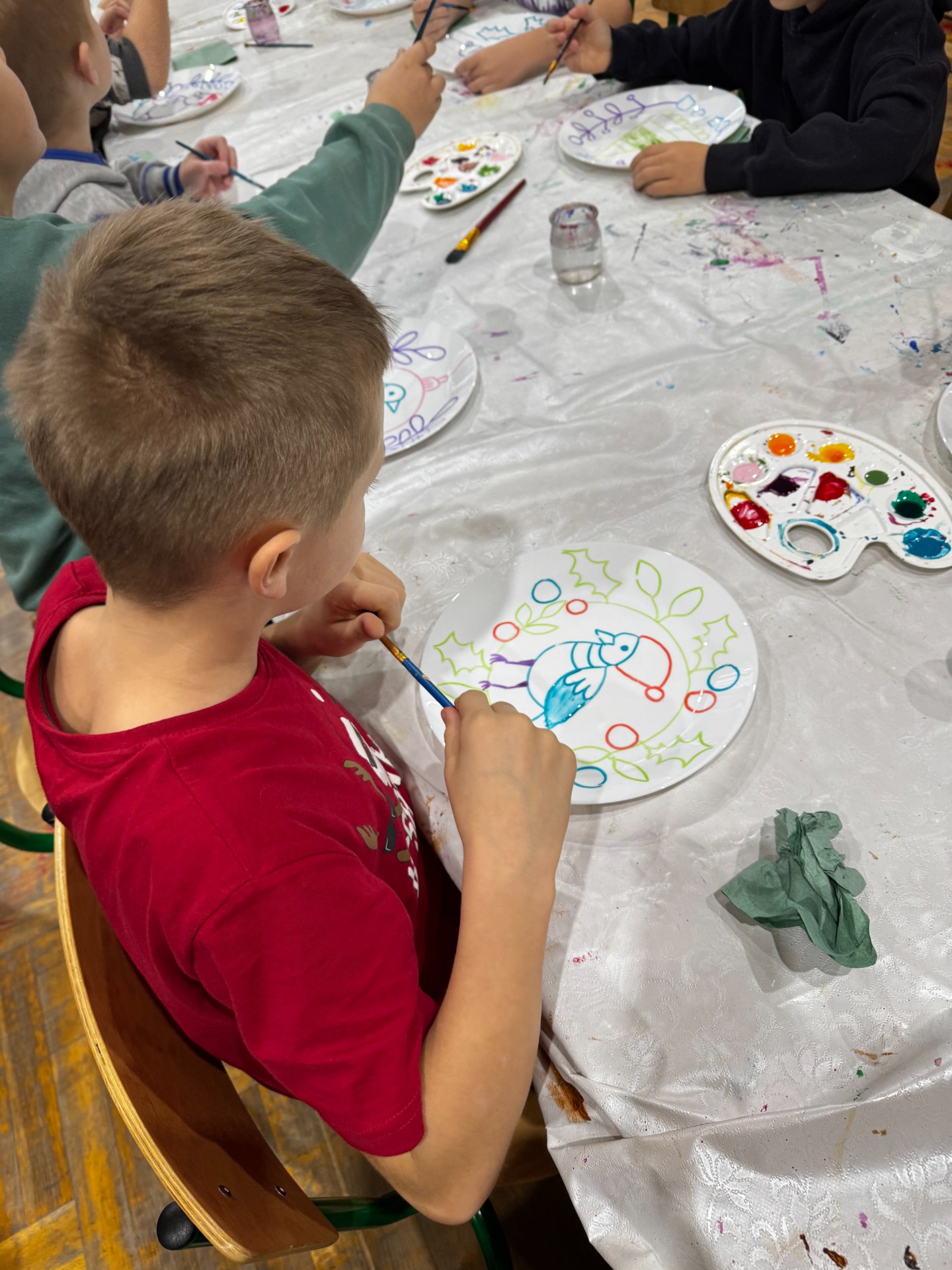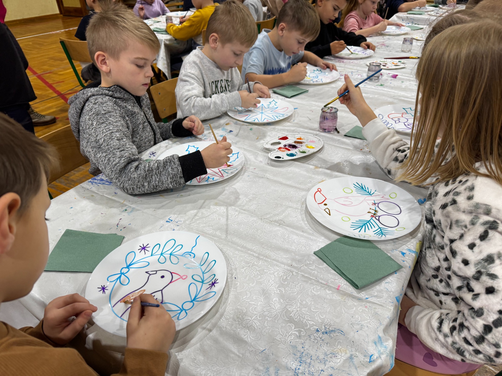 W naszej szkole zapanowała prawdziwie świąteczna atmosfera! Uczniowie klas 1-3 oraz 4-5 wzięli udział w wyjątkowych warsztatach malowania ceramiki, a konkretnie talerzy. Podczas zajęć każdy uczestnik miał okazję stworzyć swoje własne, niepowtarzalne dzieło - pięknie ozdobiony talerz.