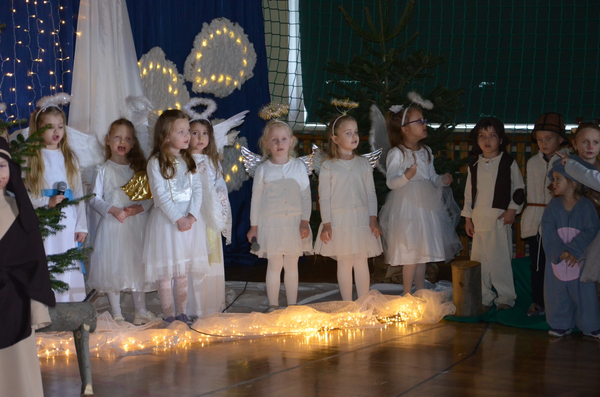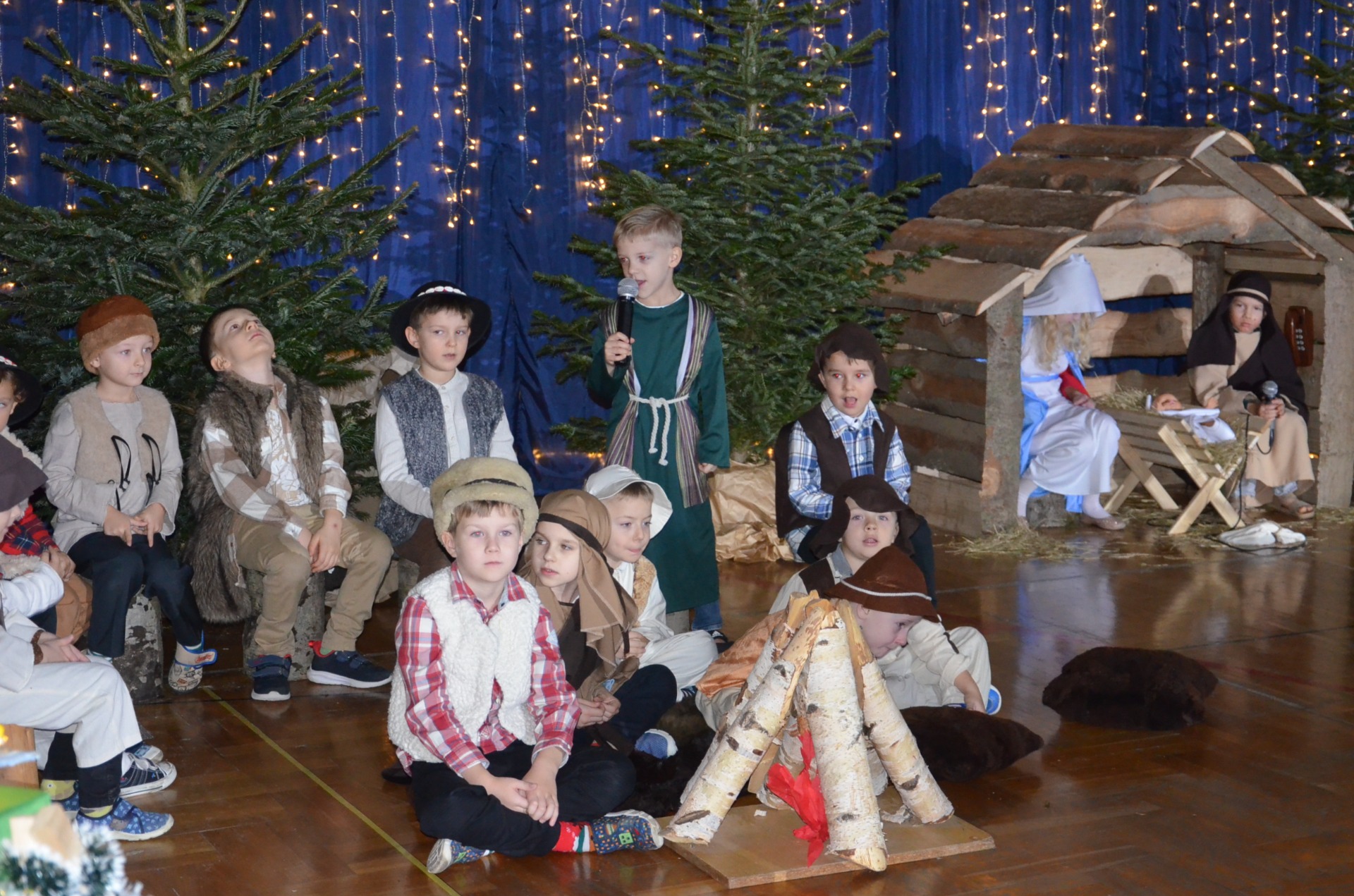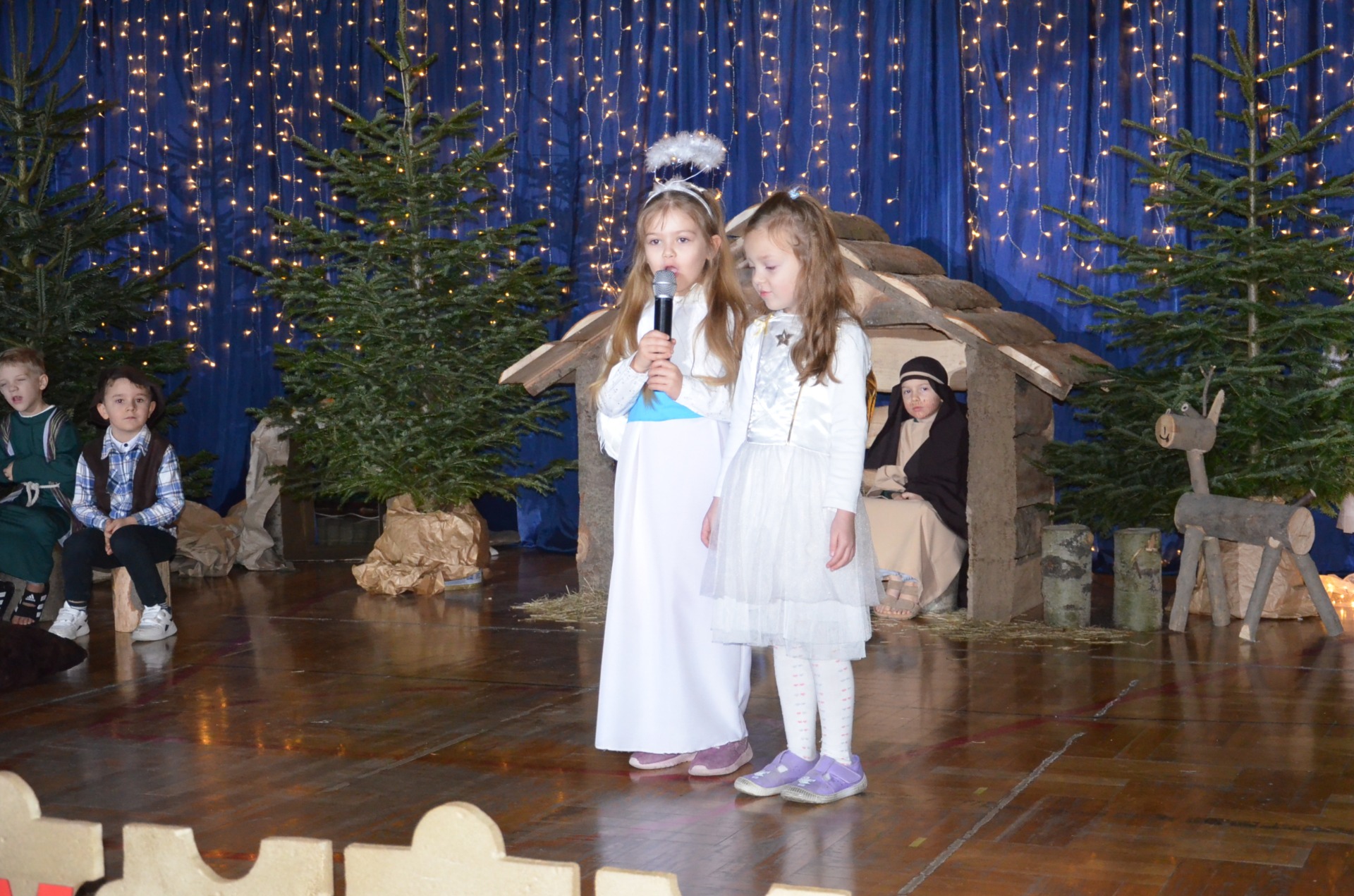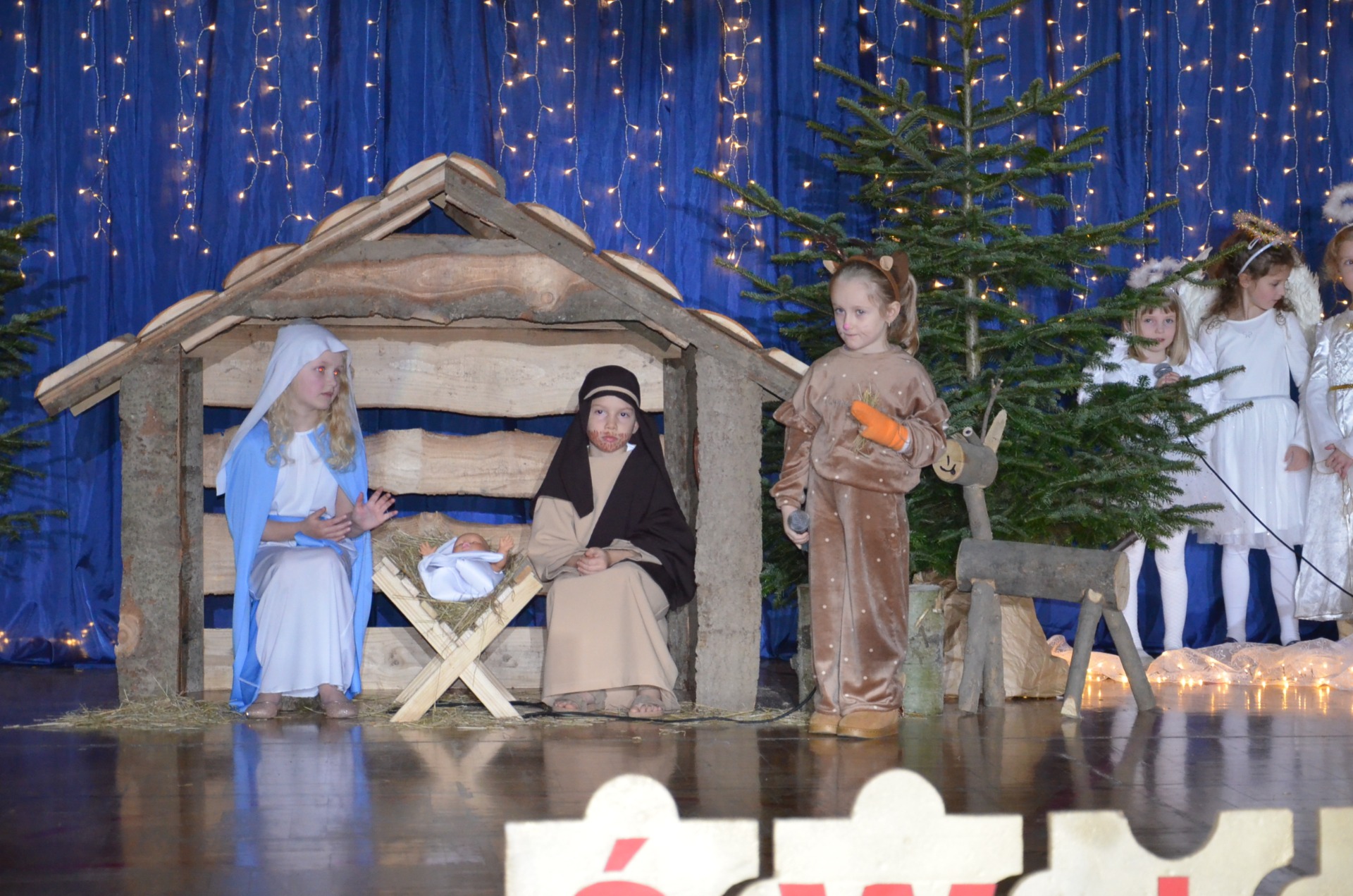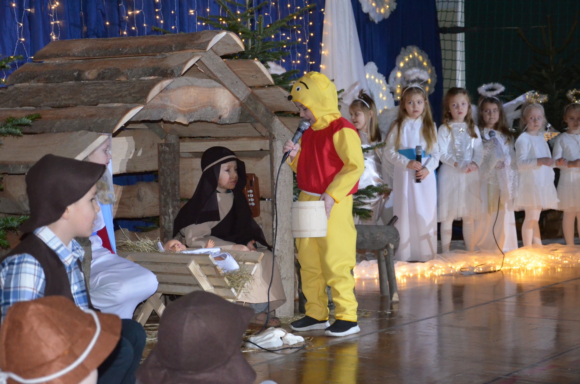 W grudniu, w naszej szkole odbyło się wyjątkowe przedstawienie jasełkowe, przygotowane przez dzieci z oddziałów przedszkolnych. Mali aktorzy z ogromnym zaangażowaniem wcielili się w swoje role, prezentując piękną historię narodzenia Jezusa. Ich występ spotkał się z ogromnym entuzjazmem i został nagrodzony gromkimi brawami.