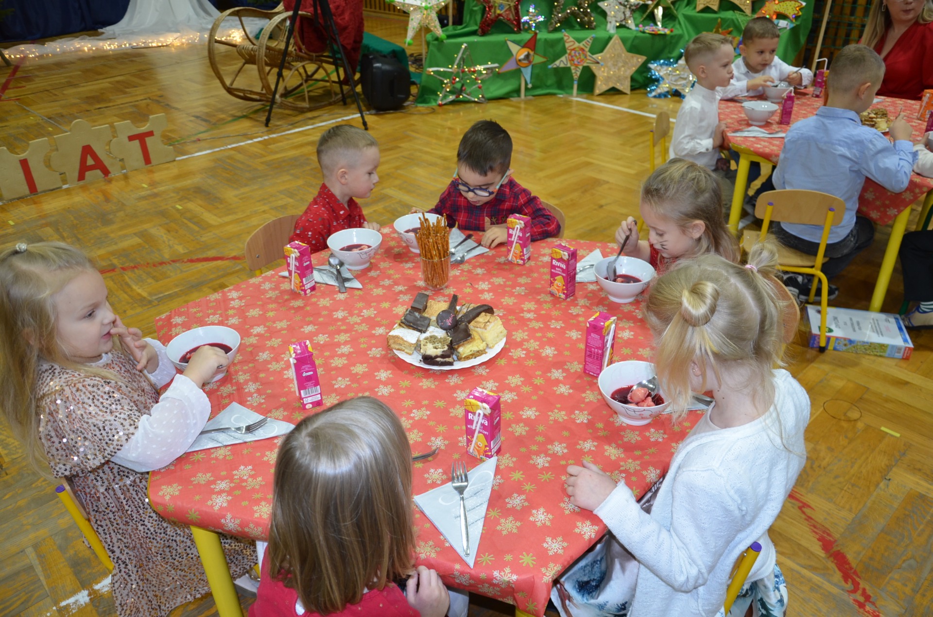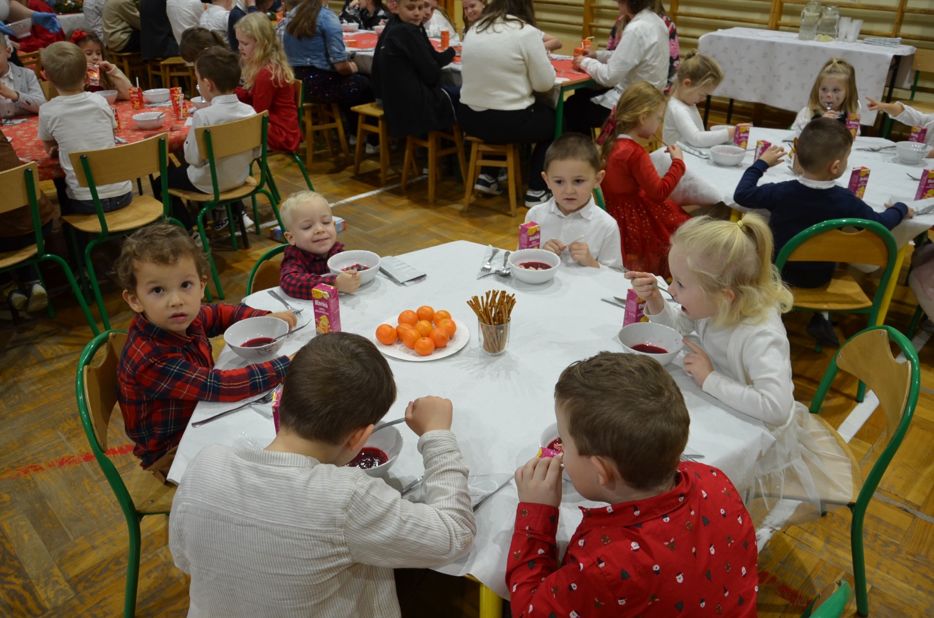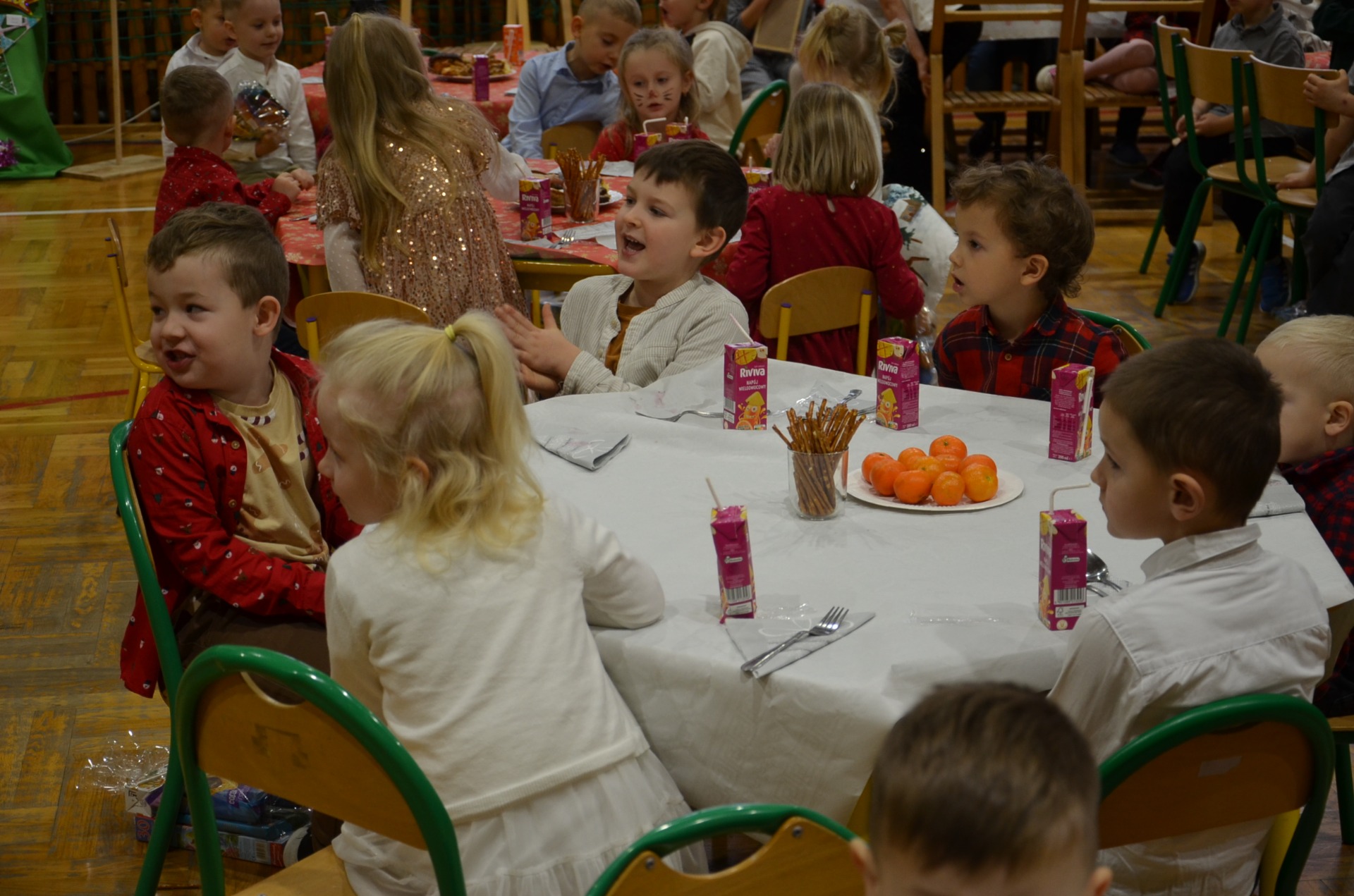 Serdecznie dziękujemy również rodzicom, którzy aktywnie włączyli się w organizację spotkania wigilijnego. Ich pomoc i zaangażowanie sprawiły, że wydarzenie stało się jeszcze bardziej wyjątkowe. Szczególne podziękowania kierujemy także za przygotowanie pysznego poczęstunku dla babć i dziadków naszych małych aktorów.