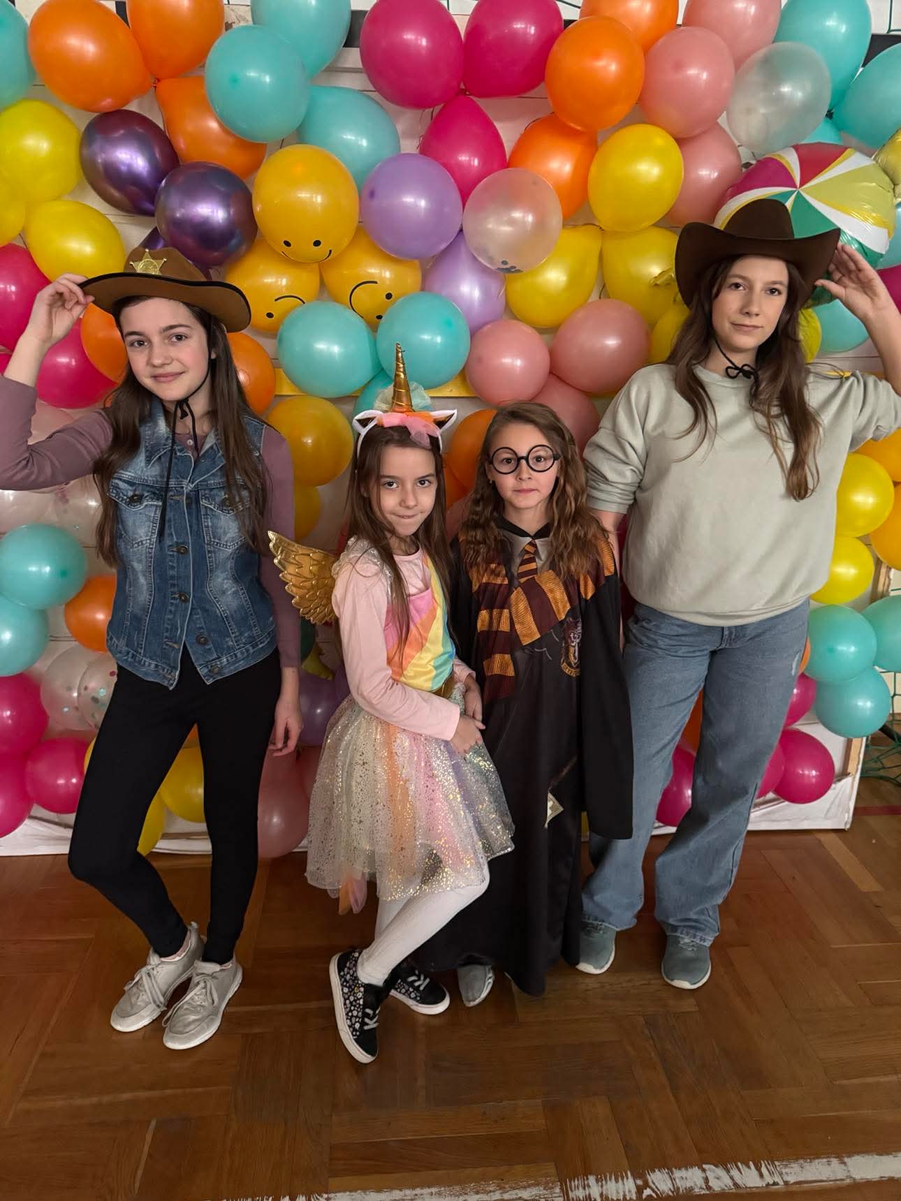 Podczas naszego balu nie zabrakło wspaniałej muzyki i licznych zabaw animowanych przez starsze koleżanki z wolontariatu. Dziewczynki świetnie sprawdziły się w roli animatorek, organizując konkursy, wspólne tańce i zabawy ruchowe, które dostarczyły dzieciom mnóstwo radości.