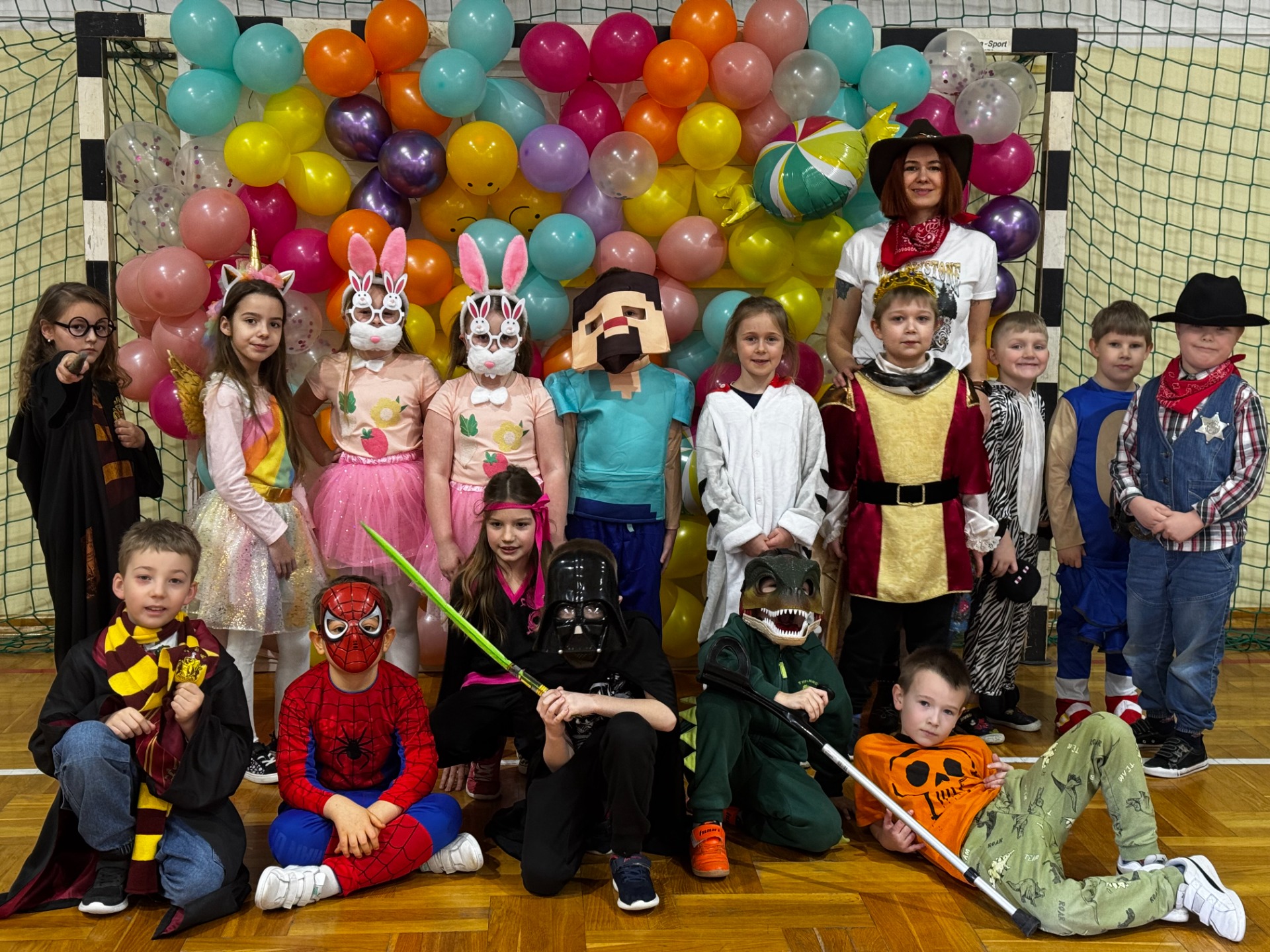 Karnawał to czas radości, zabawy i kolorowych przebrań! W naszej szkole uczniowie klas 0-3 mieli okazję przeżyć niezapomniany Bal Karnawałowy, pełen tańca, muzyki i uśmiechu. Sala gimnastyczna zamieniła się w prawdziwą krainę magii i fantazji, gdzie spotkać można było księżniczki, superbohaterów, zwierzątka i wiele innych barwnych postaci.