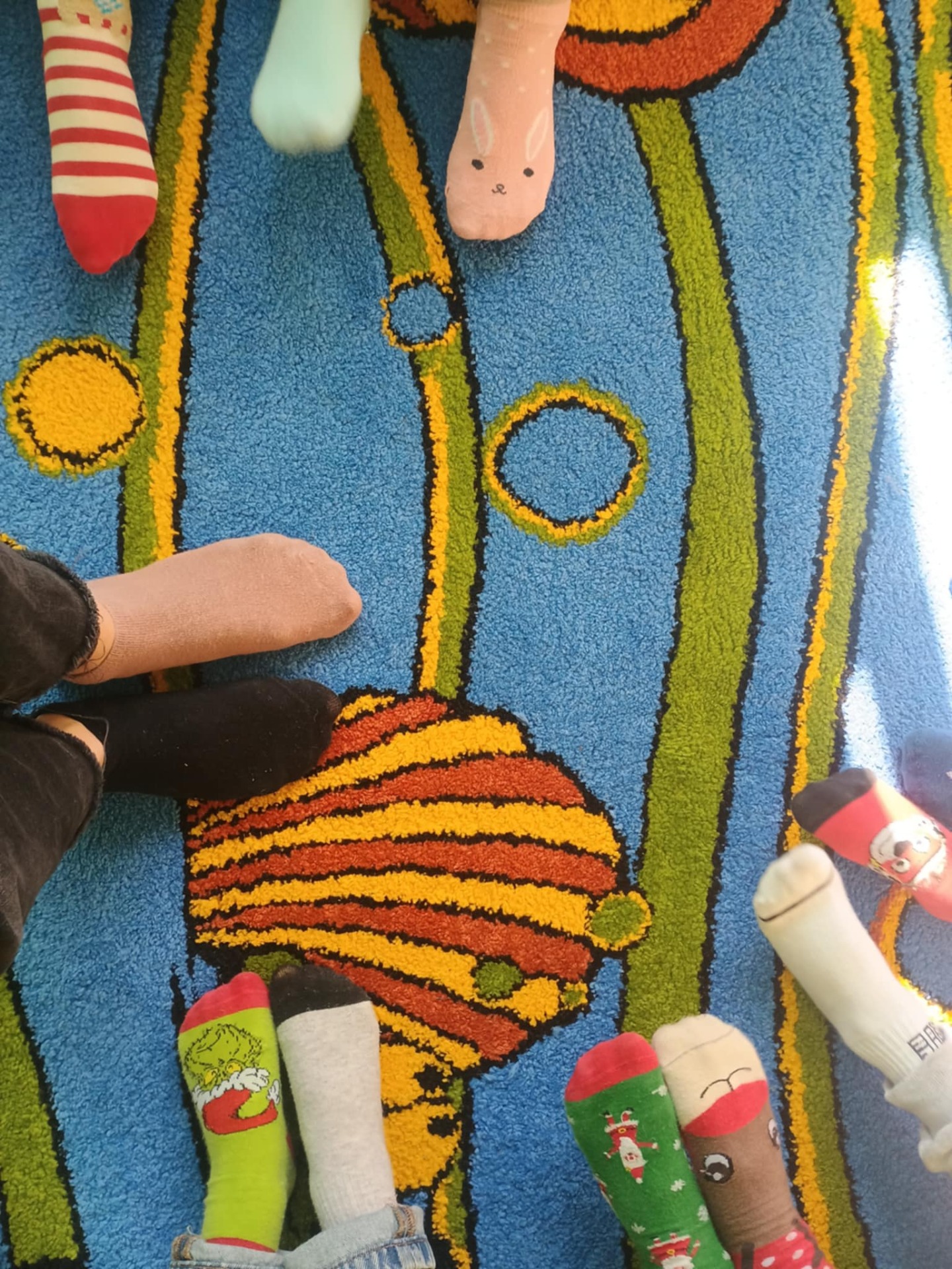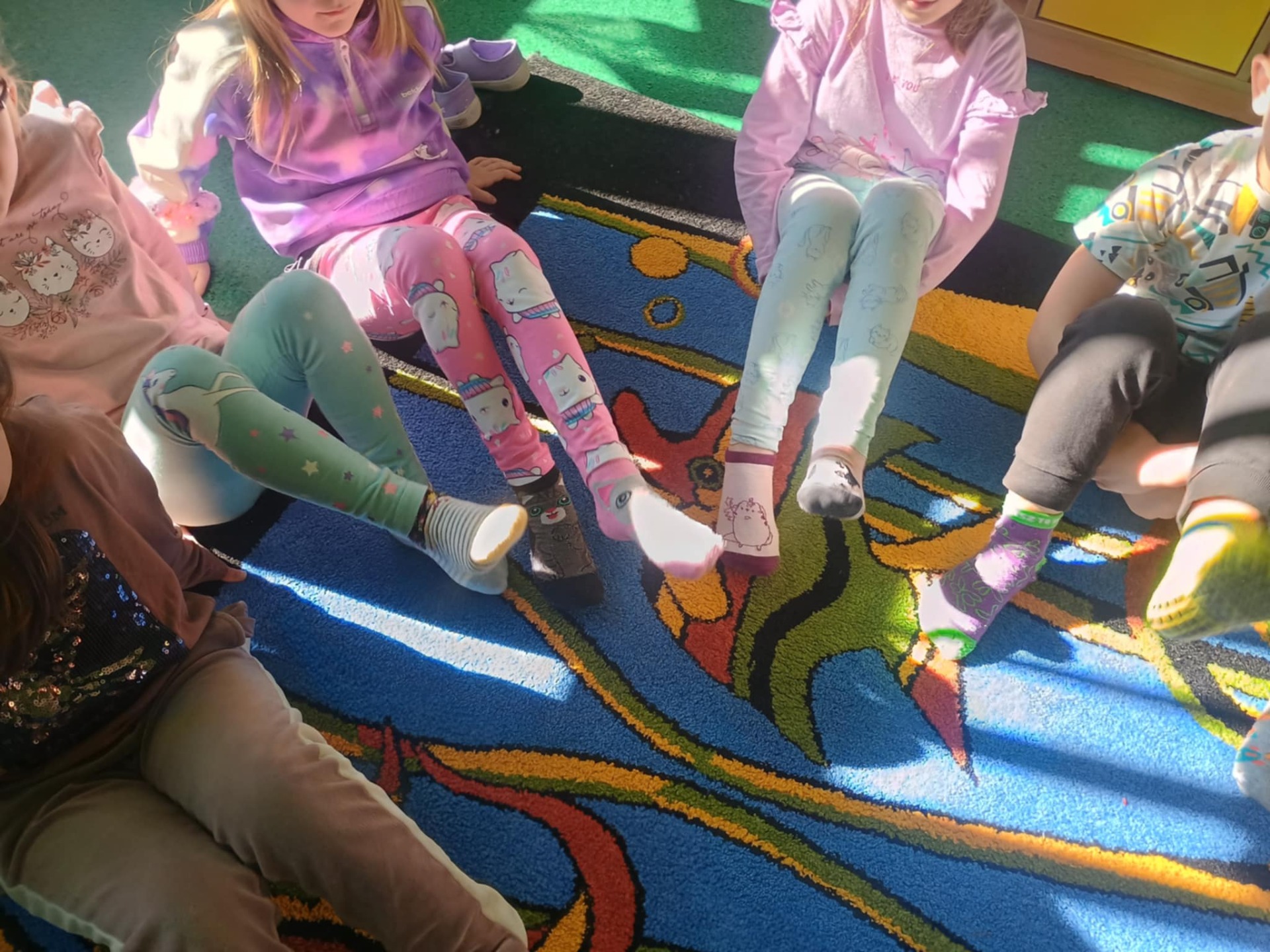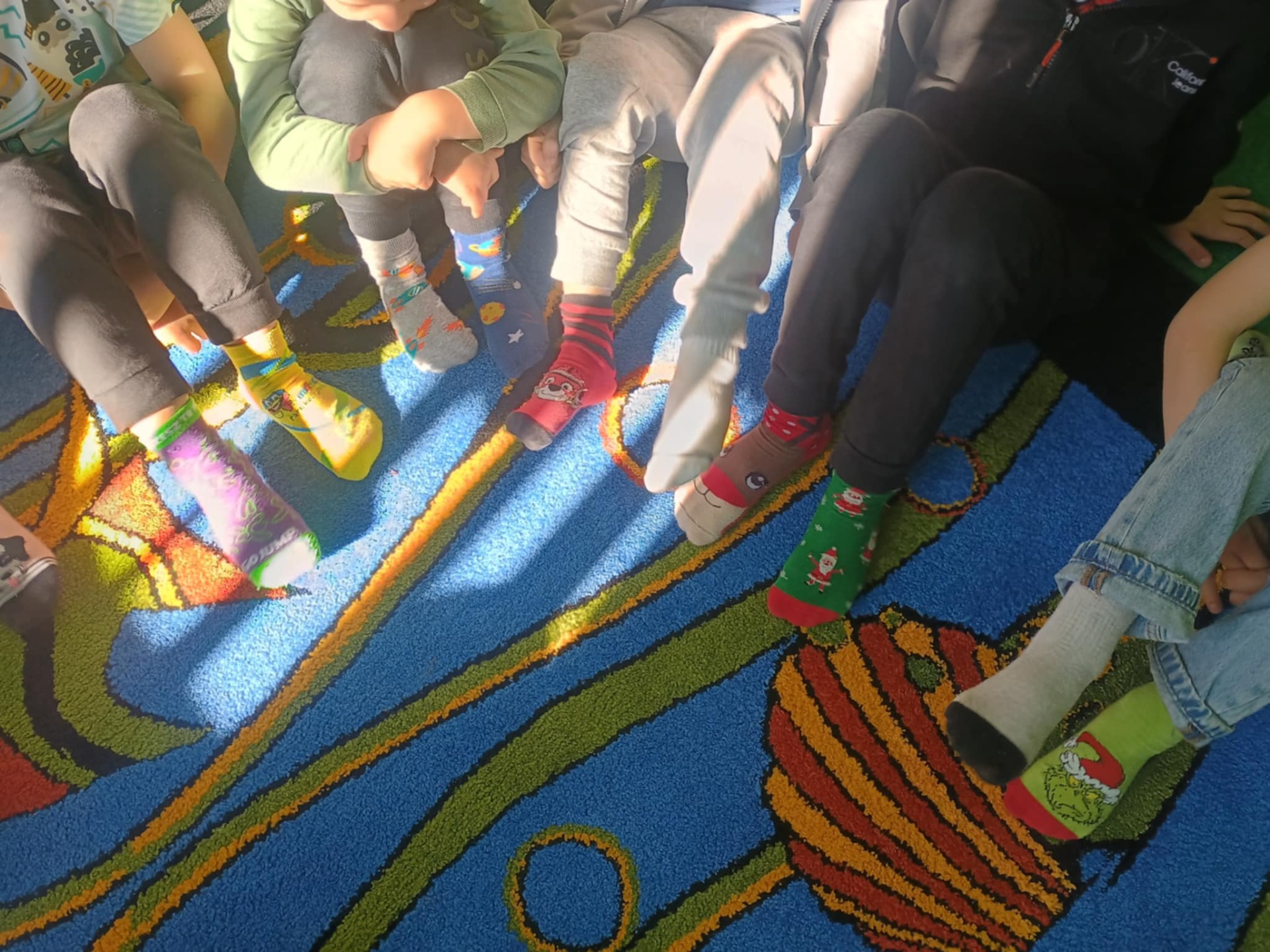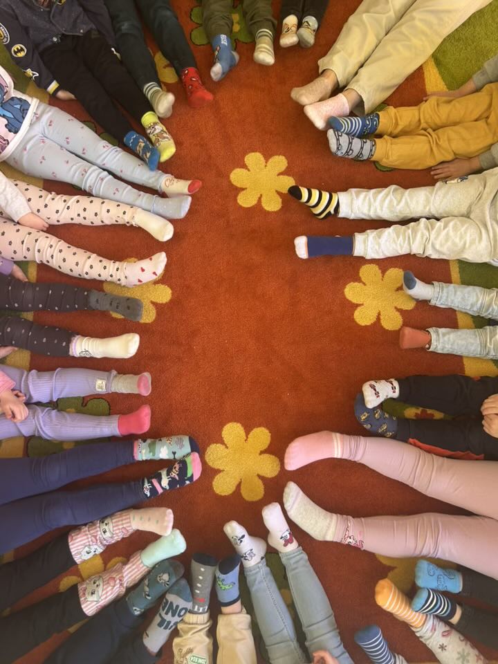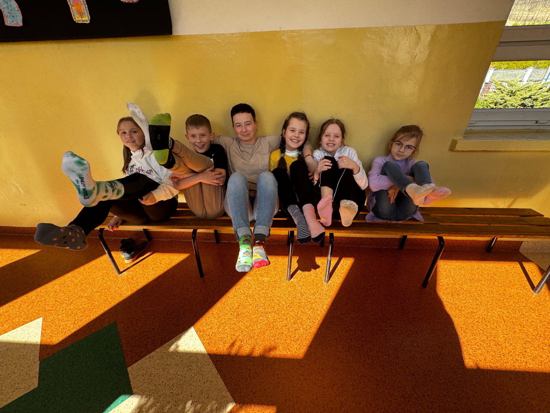 Nie zabrakło także twórczych działań plastycznych! W ramach akcji OREW oraz Światowego Dnia Zespołu Downa uczniowie wykonali piękne, kolorowe skarpety – symbol akceptacji i solidarności z osobami z zespołem Downa. Wykonane prace zawisły na szkolnym korytarzu, tworząc niezwykle barwną i radosną dekorację.