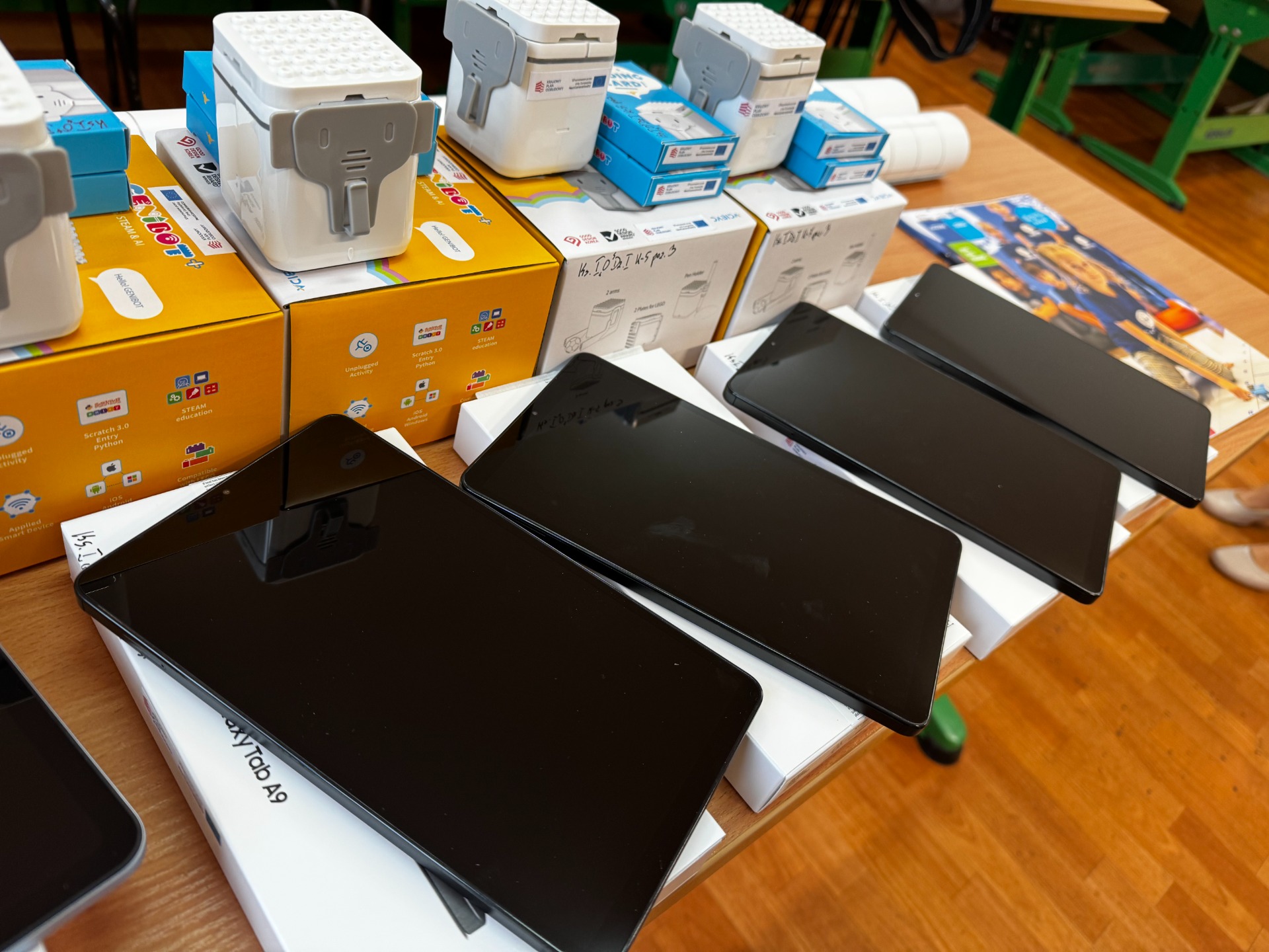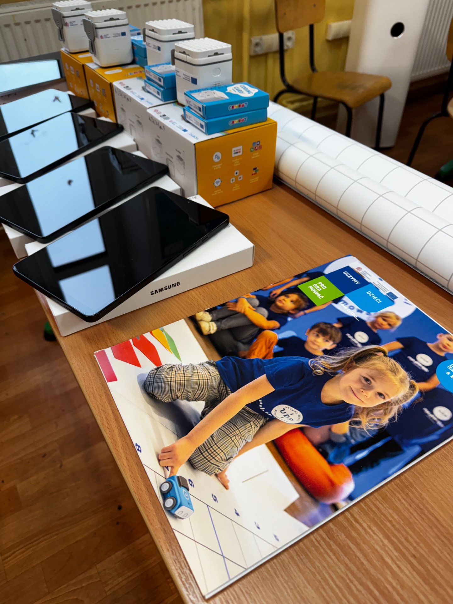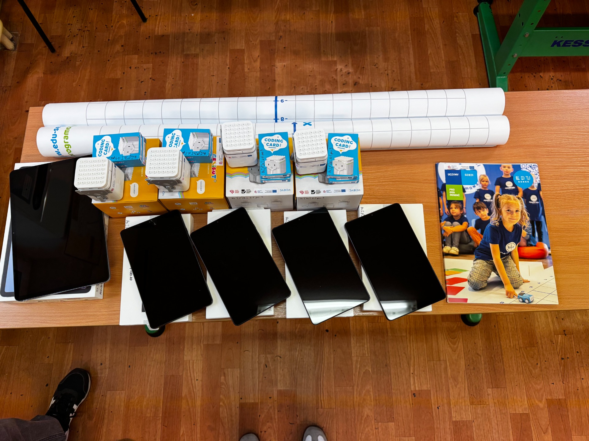 Po zakończeniu szkoleń i spełnieniu określonych wymagań, nasza szkoła, otrzymała grant w wysokości 7830,18 PLN na zakup cyfrowych materiałów dydaktycznych. Środki te zostały przeznaczone na zakup robotów do kodowania GENIBOT wraz z matą i tabletów, z których już przedszkolaki korzystają.