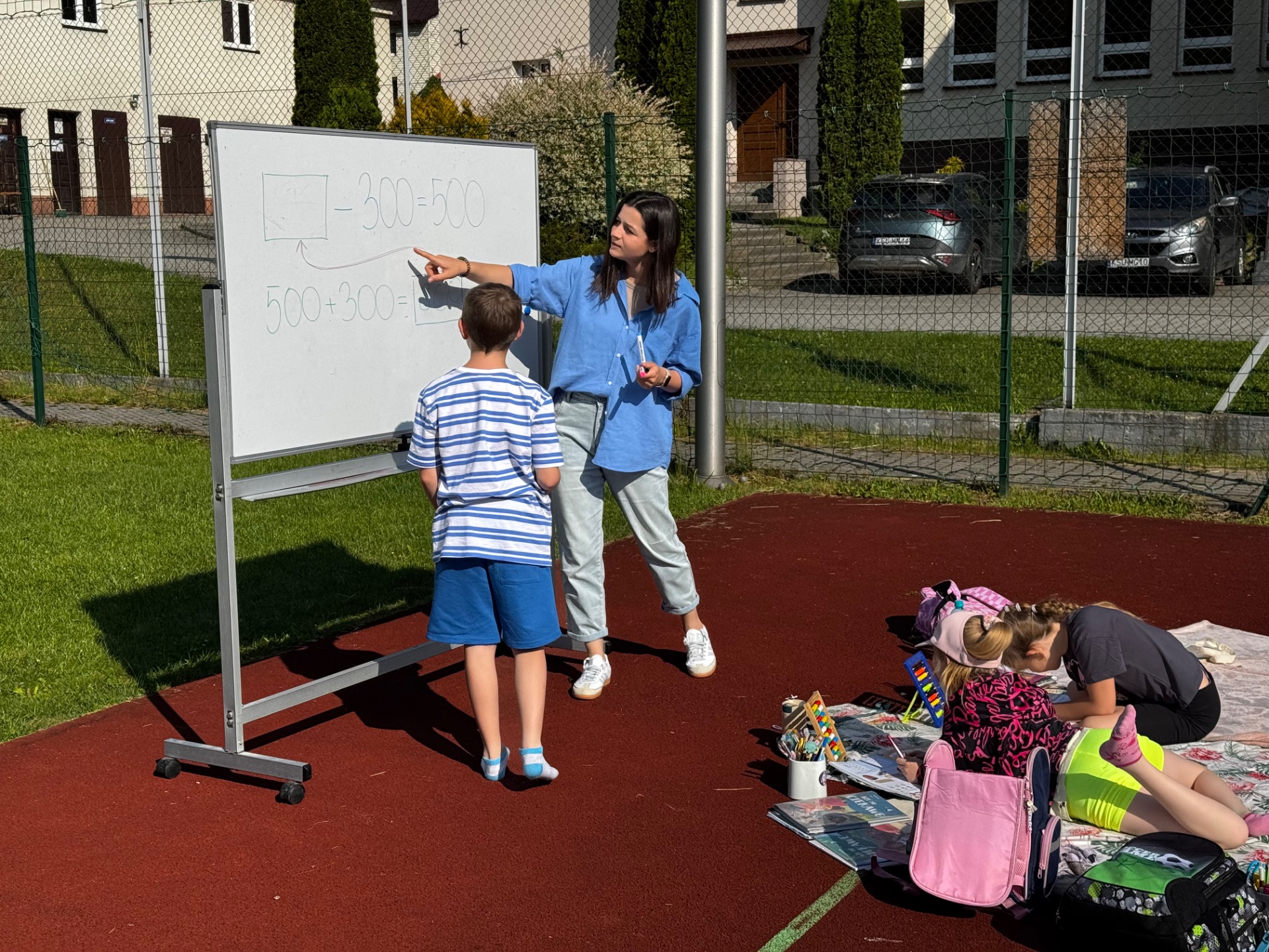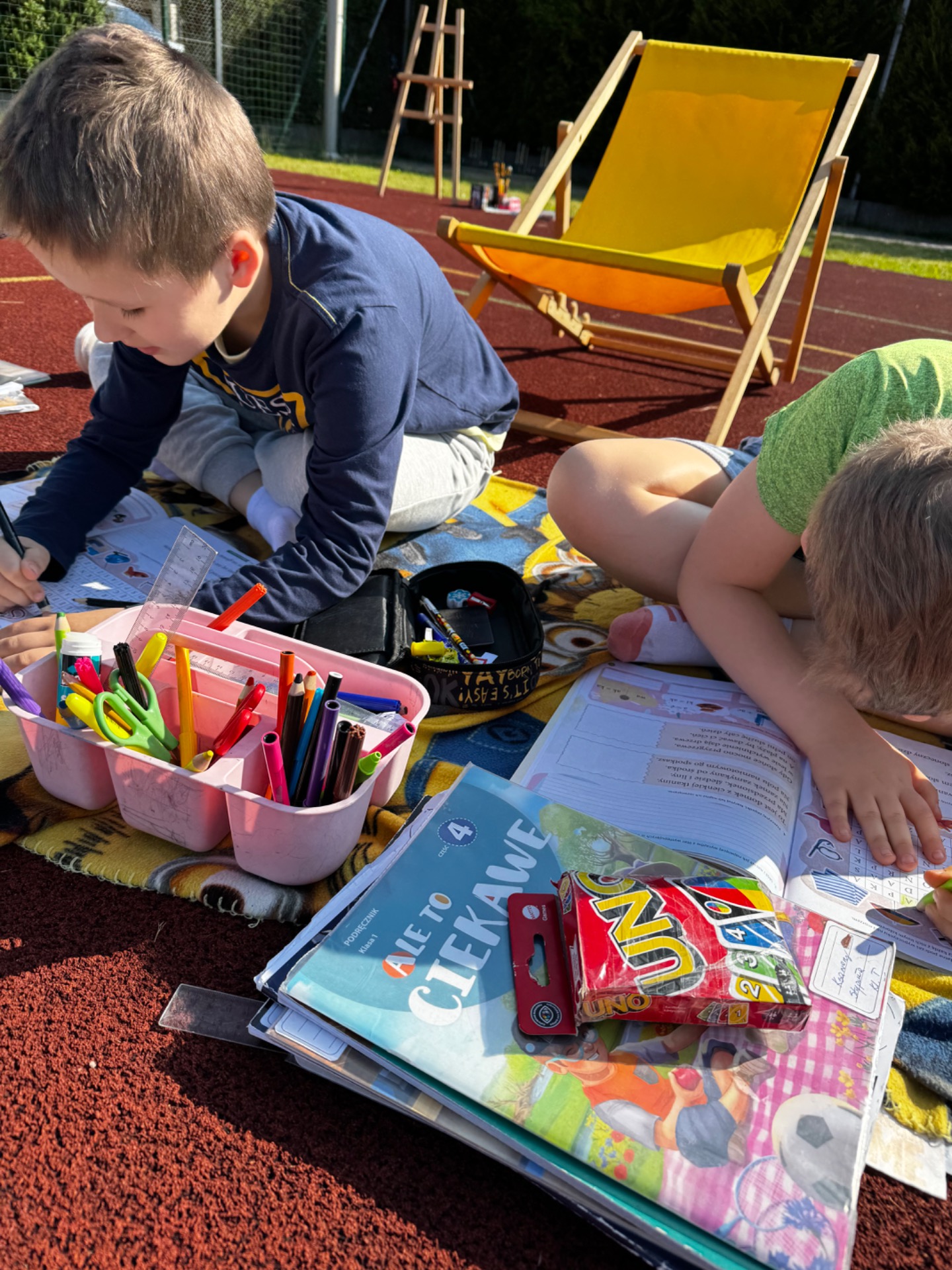 Lekcje spędziliśmy na dworze – uczyliśmy się w ruchu, rozwijaliśmy swoje umiejętności poprzez działania praktyczne i budowaliśmy relacje, które są fundamentem dobrej atmosfery w klasie. Był to dzień pełen śmiechu, radości i pozytywnej energii. Nie zabrakło chwil refleksji, wspólnych rozmów i momentów odpoczynku, które są równie ważne, jak nauka z podręcznika.