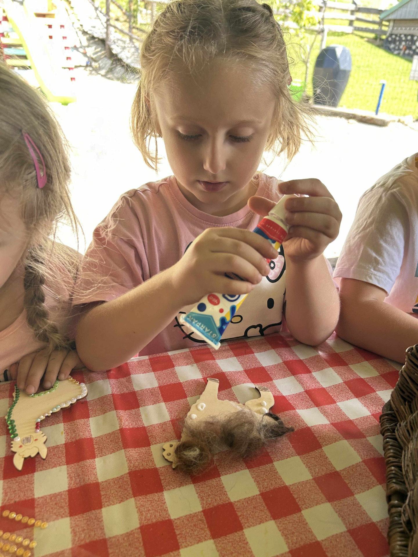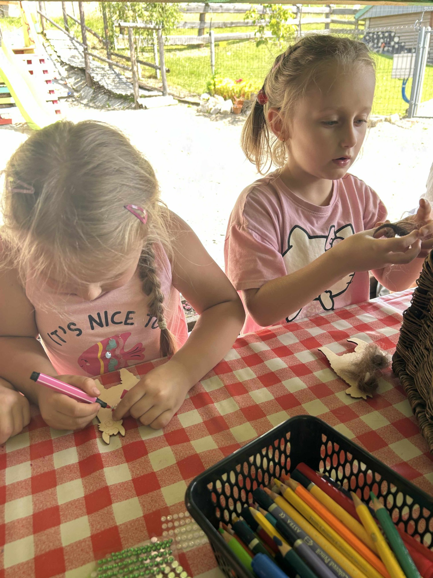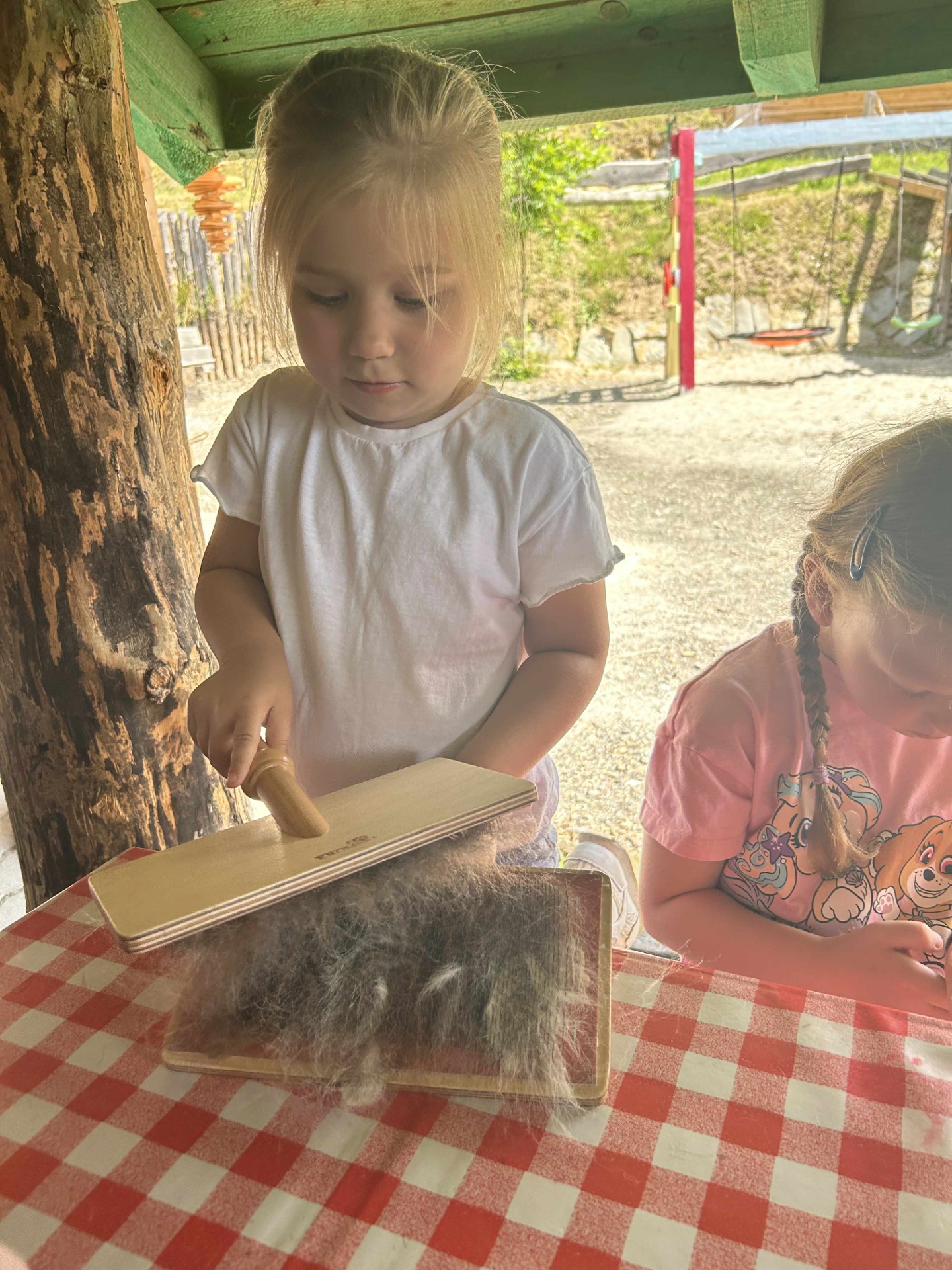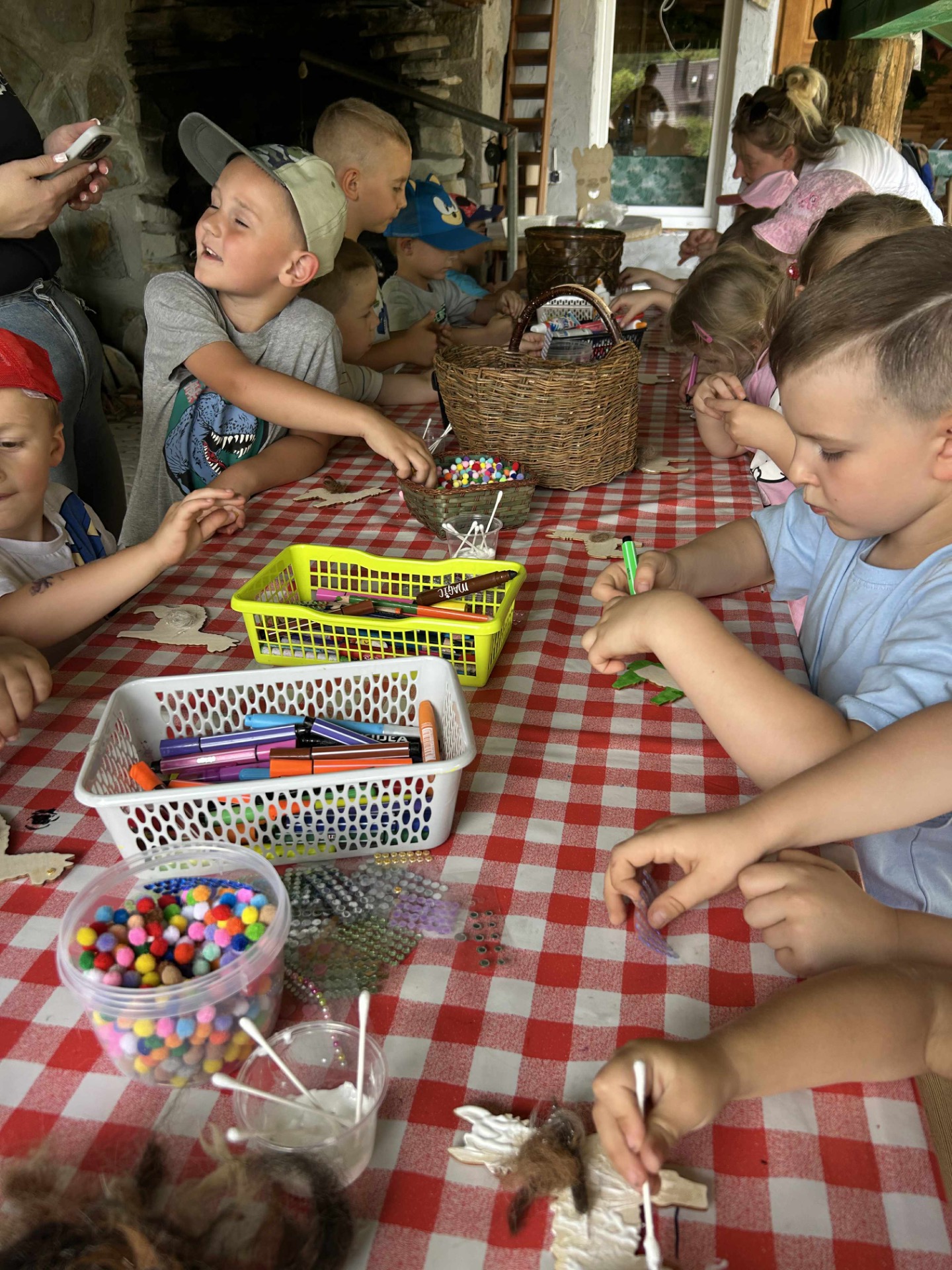 Kolejnym punktem programu były warsztaty artystyczne, podczas których przedszkolaki mogły własnoręcznie wykonać magnesy z prawdziwego alpakowego runa. Twórcza praca z naturalnym materiałem rozwijała zdolności manualne i była doskonałą okazją do nauki poprzez zabawę. Każde dziecko wróciło z pamiątkowym magnesem, który z dumą mogło zabrać do domu.