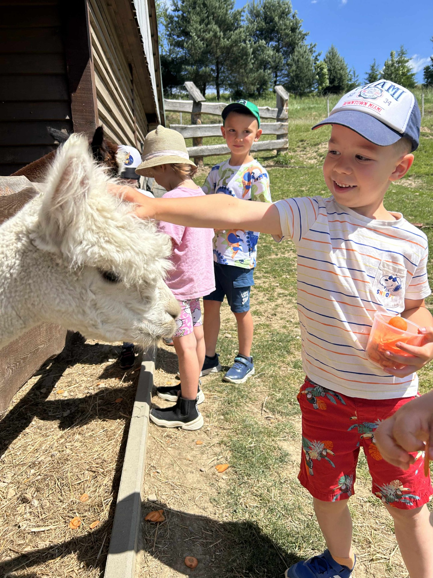 Najwięcej radości sprawiło przedszkolakom bezpośrednie spotkanie z alpakami. Każde dziecko miało okazję pogłaskać zwierzęta, a także samodzielnie je nakarmić przygotowanymi smakołykami. Alpaki okazały się łagodne i przyjazne, a kontakt z nimi dostarczył dzieciom wielu pozytywnych emocji.