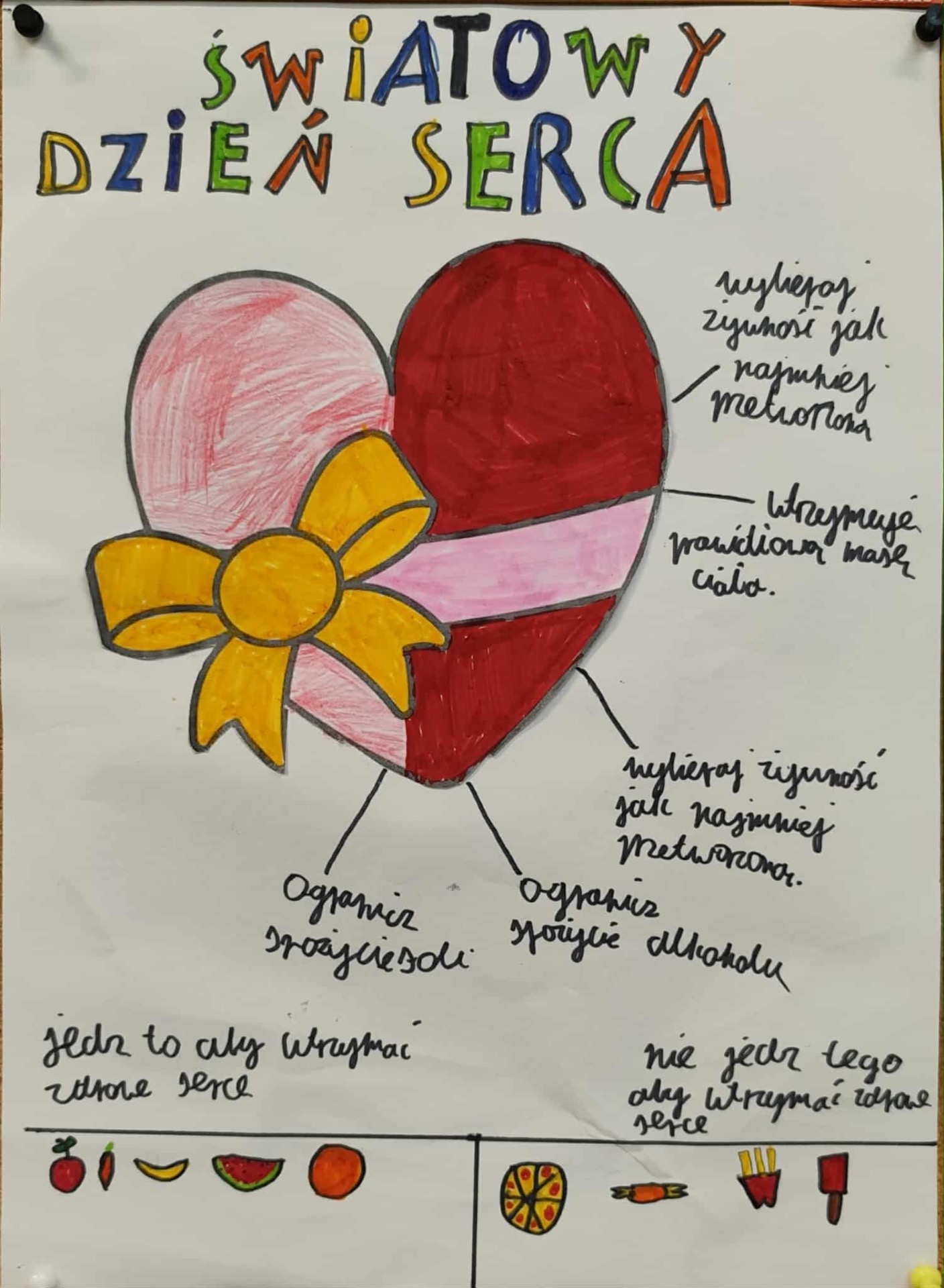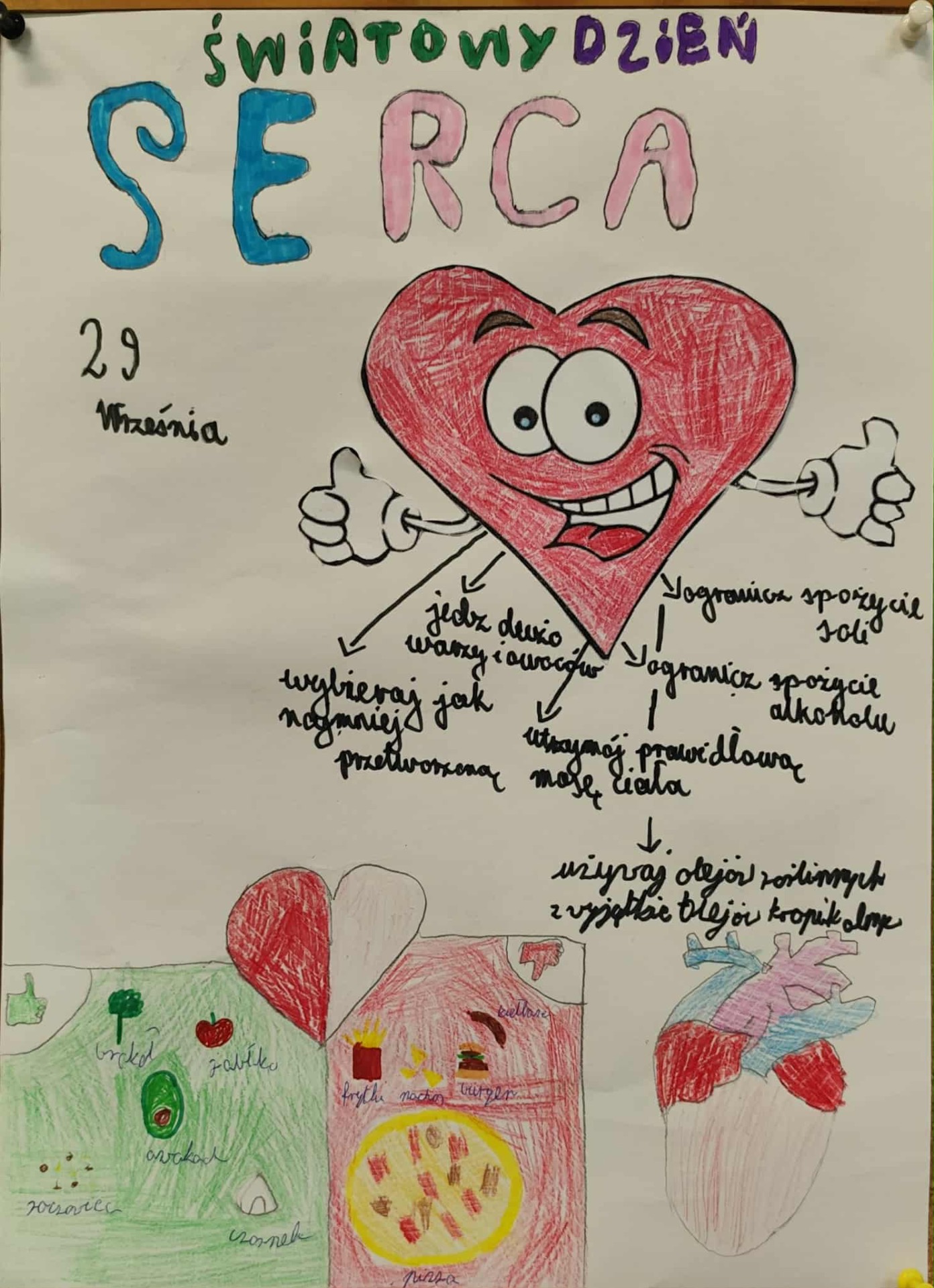 W tym roku również nasza szkoła włączyła się w obchody tego dnia. Uczniowie klas IV, V, VI oraz VII aktywnie uczestniczyli w lekcjach edukacji zdrowotnej dzieląc się swoimi doświadczeniami i spostrzeżeniami na ten temat. Tematem Światowego Dnia Serca 2025 jest „Don’t Miss a Beat” ("Nie przegap bicia serca") W haśle tym kryje się zachęta, by nie ignorować sygnałów ostrzegawczych, podjąć działania profilaktyczne, zadbać o regularne badania, prowadzić zdrowy styl życia i zapewnić sobie dostęp do opieki zdrowotnej, gdy pojawią się problemy sercowo-naczyniowe. Uczniowie omawiali wpływ aktywności fizycznej oraz zdrowego stylu życia na nasze serce. Podczas lekcji wykonywali prace plastyczne i plakaty związane właśnie z tym dniem.