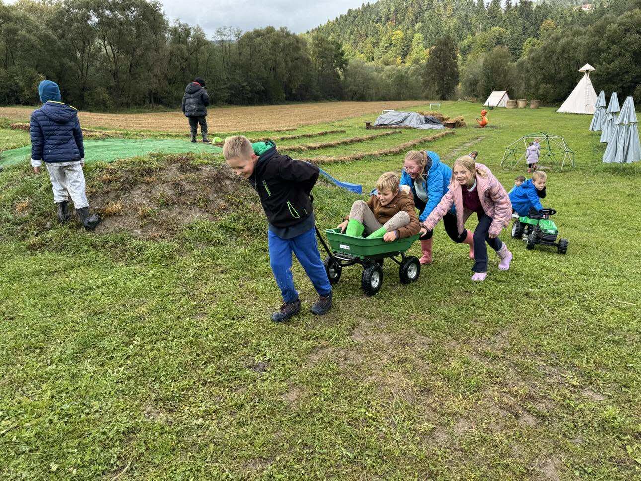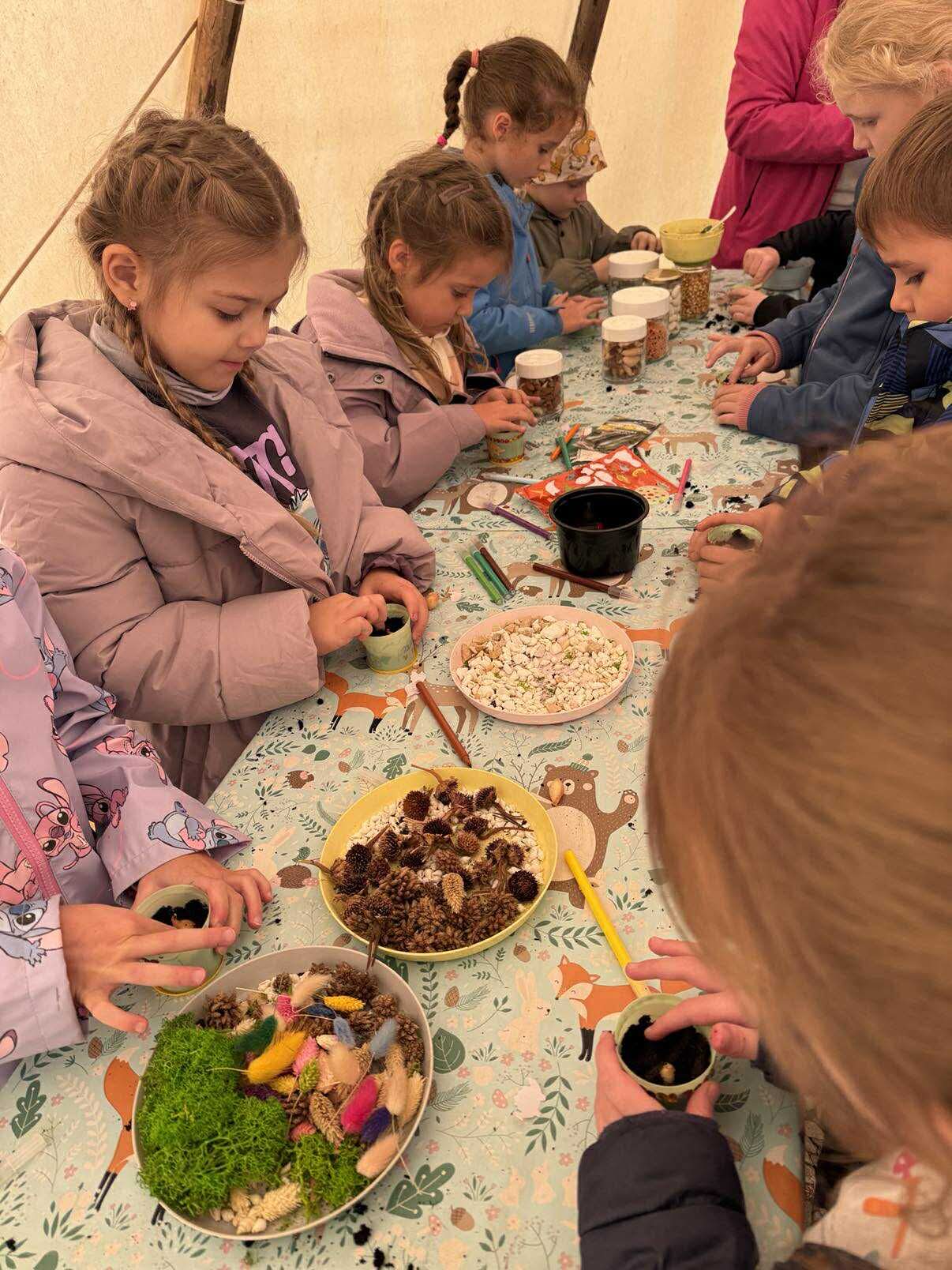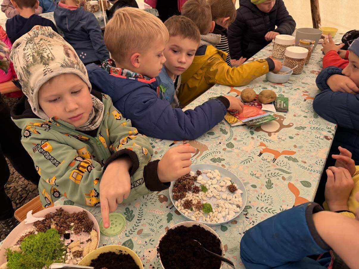 Dzieci uczestniczyły w warsztatach z sadzenia roślinek oraz zajęciach kreatywnych, podczas których mogły rozwijać swoje zdolności manualne i artystyczne. Nie zabrakło też czasu na swobodną zabawę na placu zabaw oraz na pełen emocji spacer po labiryncie z kukurydzy.
