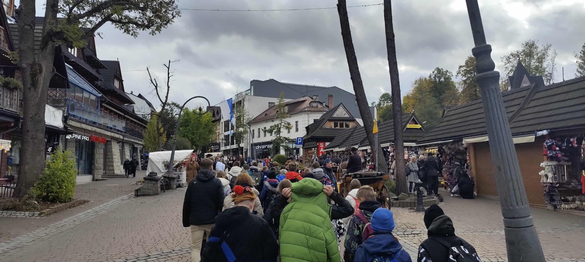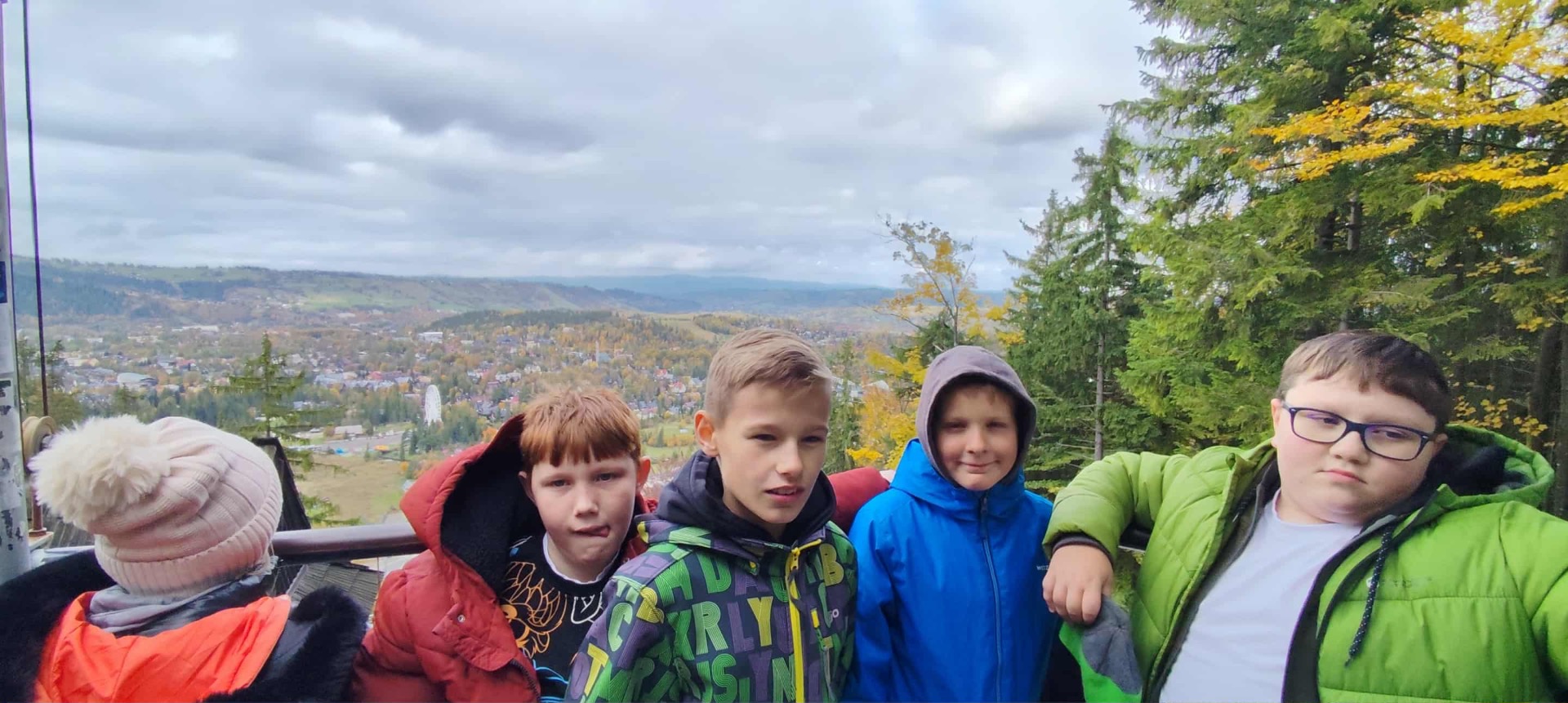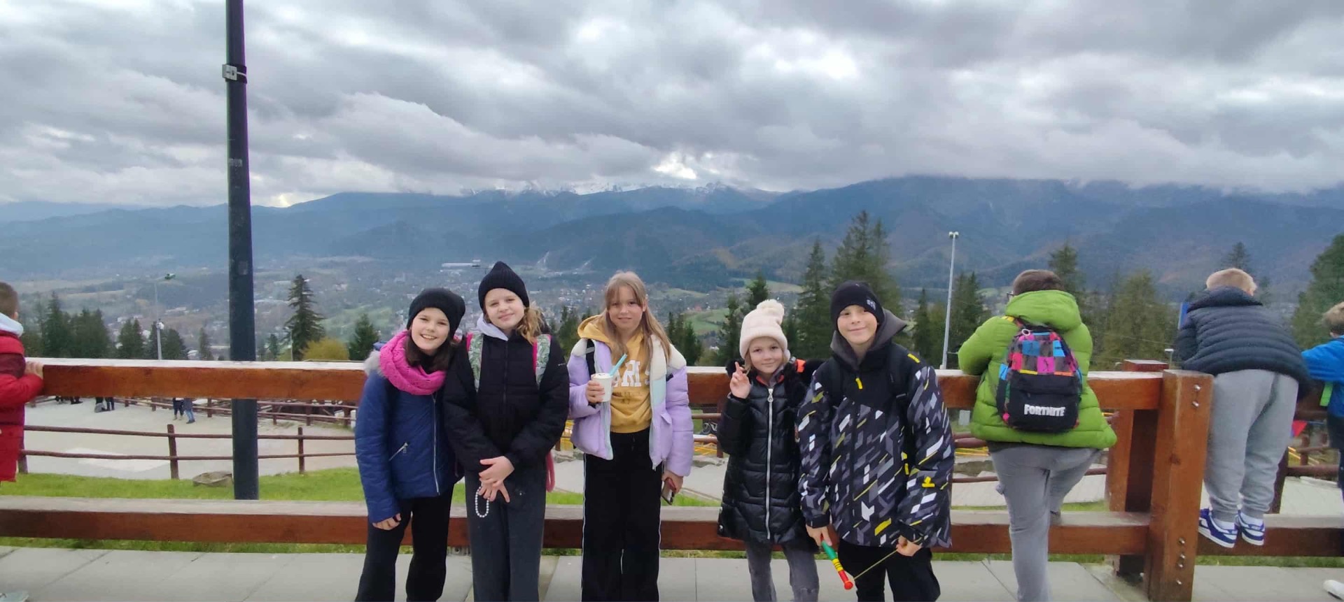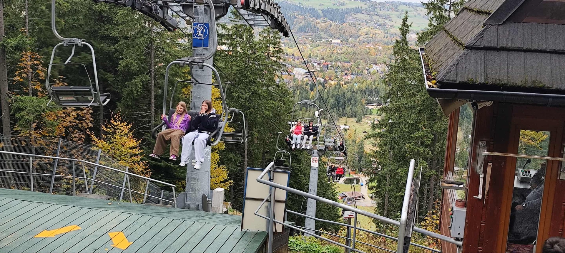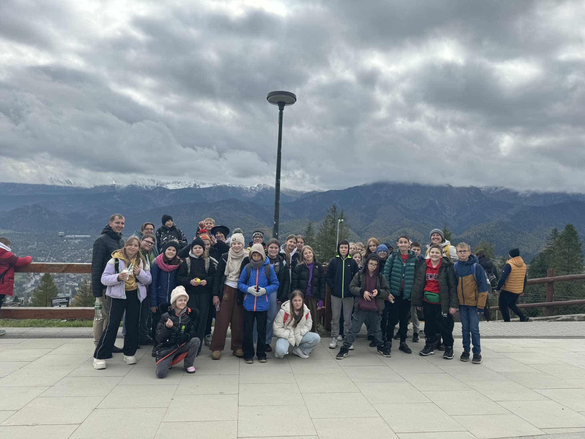 Kolejnym etapem wycieczki był wyjazd kolejką na Gubałówkę, skąd mogliśmy podziwiać zapierającą dech w piersiach panoramę Tatr – częściowo spowitą jesienną mgłą, co dodawało krajobrazowi tajemniczego uroku. Po krótkim spacerze po Gubałówce uczniowie udali się na Krupówki, gdzie panowała tętniąca życiem atmosfera górskiego kurortu.